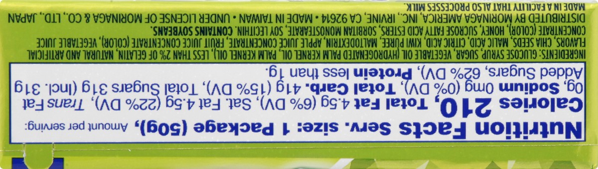 Glucose Syrup, Sugar, Vegetable Oil (Hydrogenated Palm Kernel Oil, Palm Kernel Oil), Less than 2% of Gelatin, Natural and Artificial Flavors, Chia Seeds, Malic Acid, Citric Acid, Kiwi Puree, Maltodext…