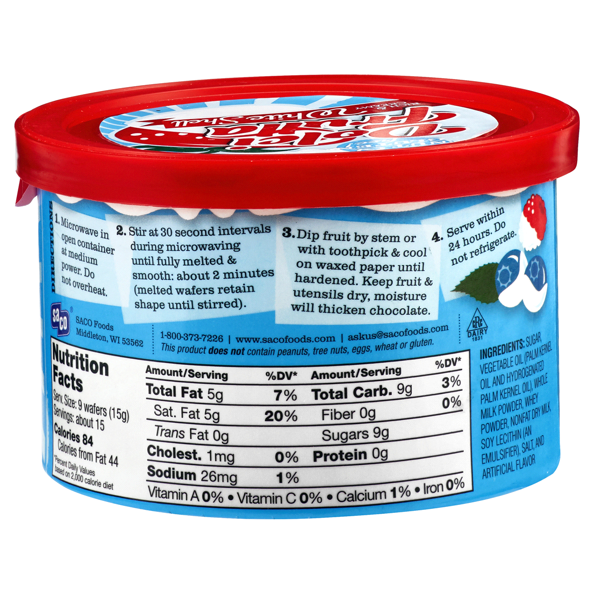 Nut & gluten free! This product does not contain peanuts, tree nuts, eggs, wheat or gluten. Rich & creamy. Simply microwave, dip and done! Nuts. Snacks. Making fruit fabulous! www.sacofoods.com. Great…