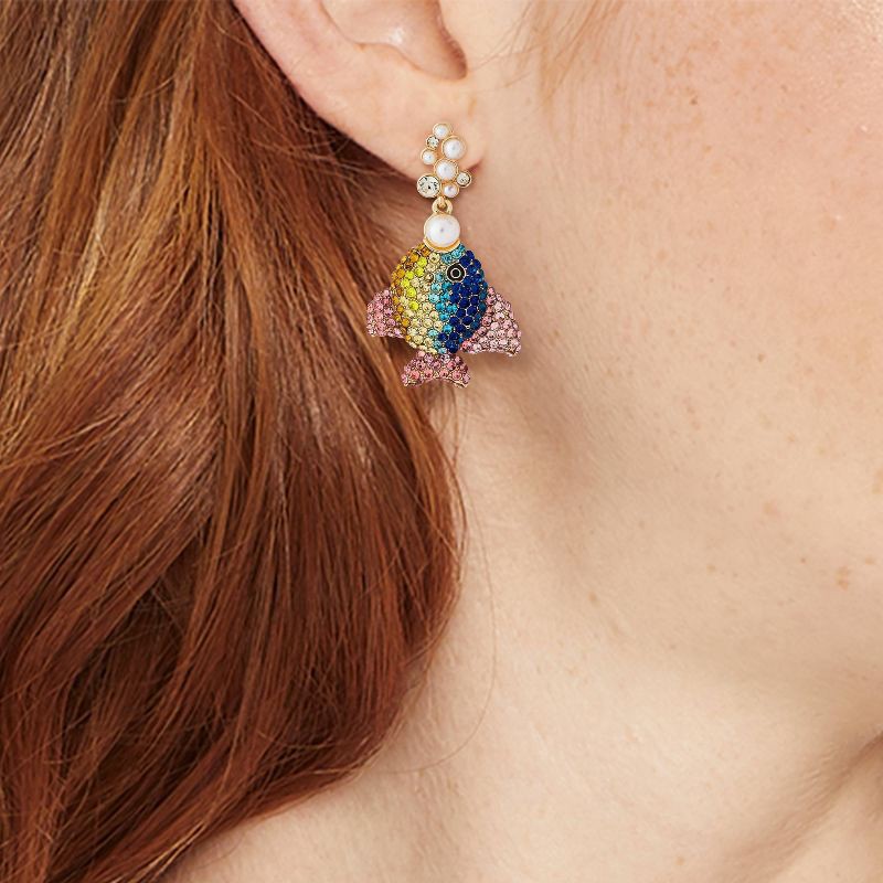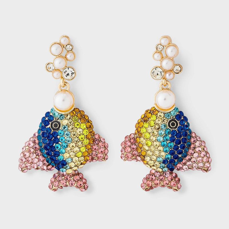 Make a splash with the Sugarfix by BaubleBar Catch of the Day Earrings. These statement drops feature fish embellished with blue, pink, and yellow stones, accented with pearls, and designed to stay co…