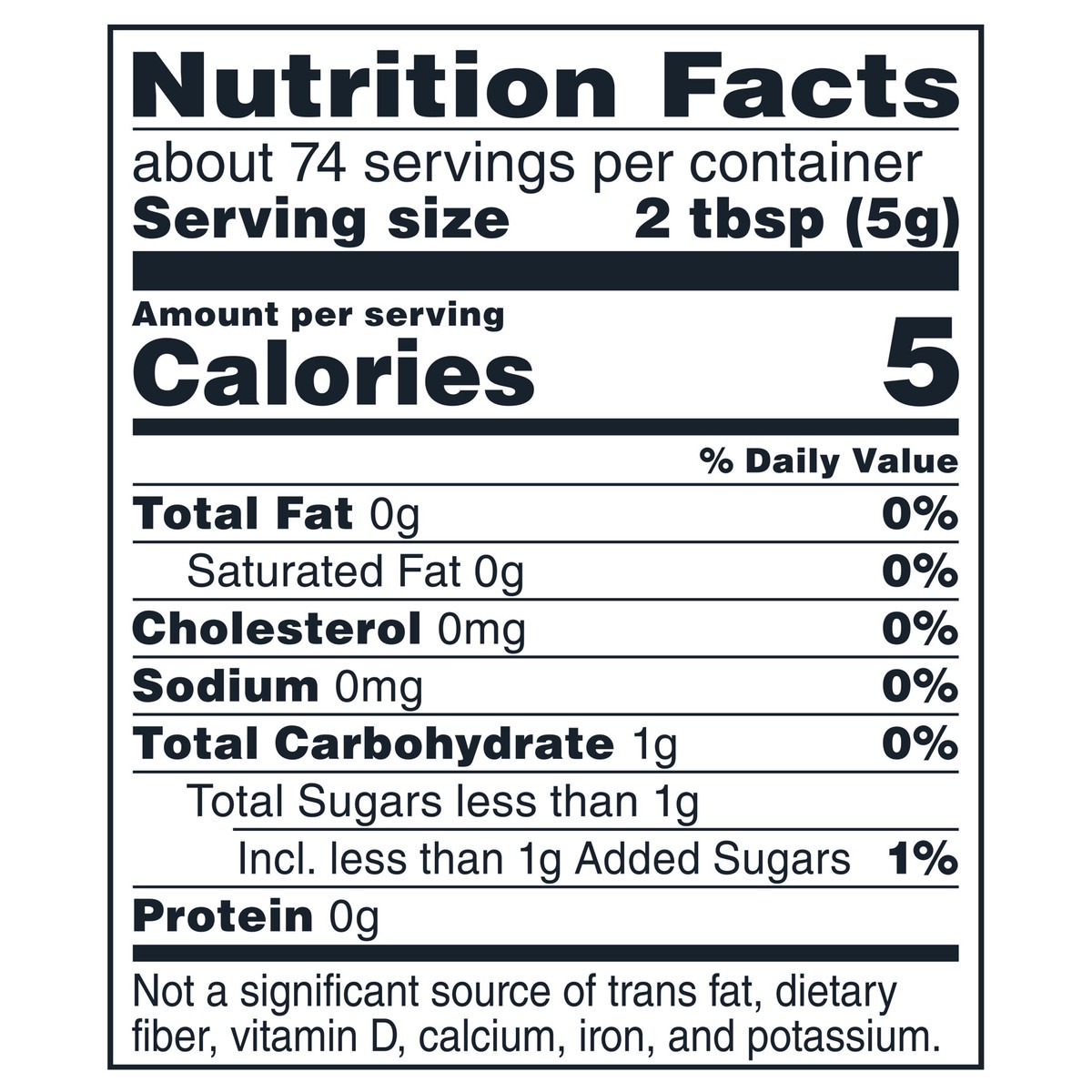- Whipped topping contains 5 calories per serving and made without hydrogenated oils