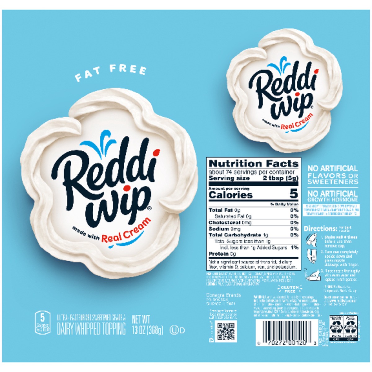 Reddi-wip Fat Free Whipped Topping Made with Real Cream, 13 oz
