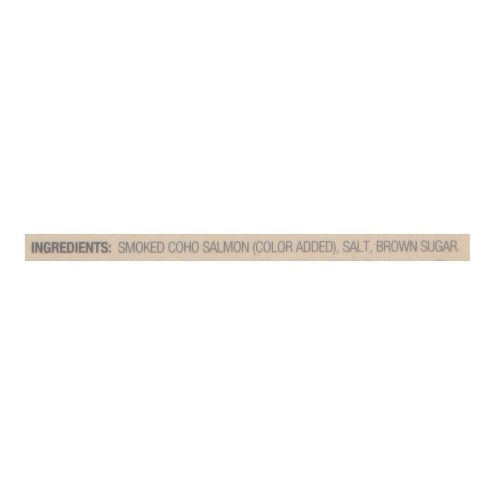 Smoked Coho Salmon (Color Added), Salt, Brown Sugar.
