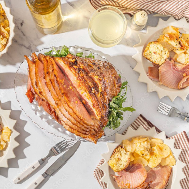 - Spiral sliced ham for easy carving