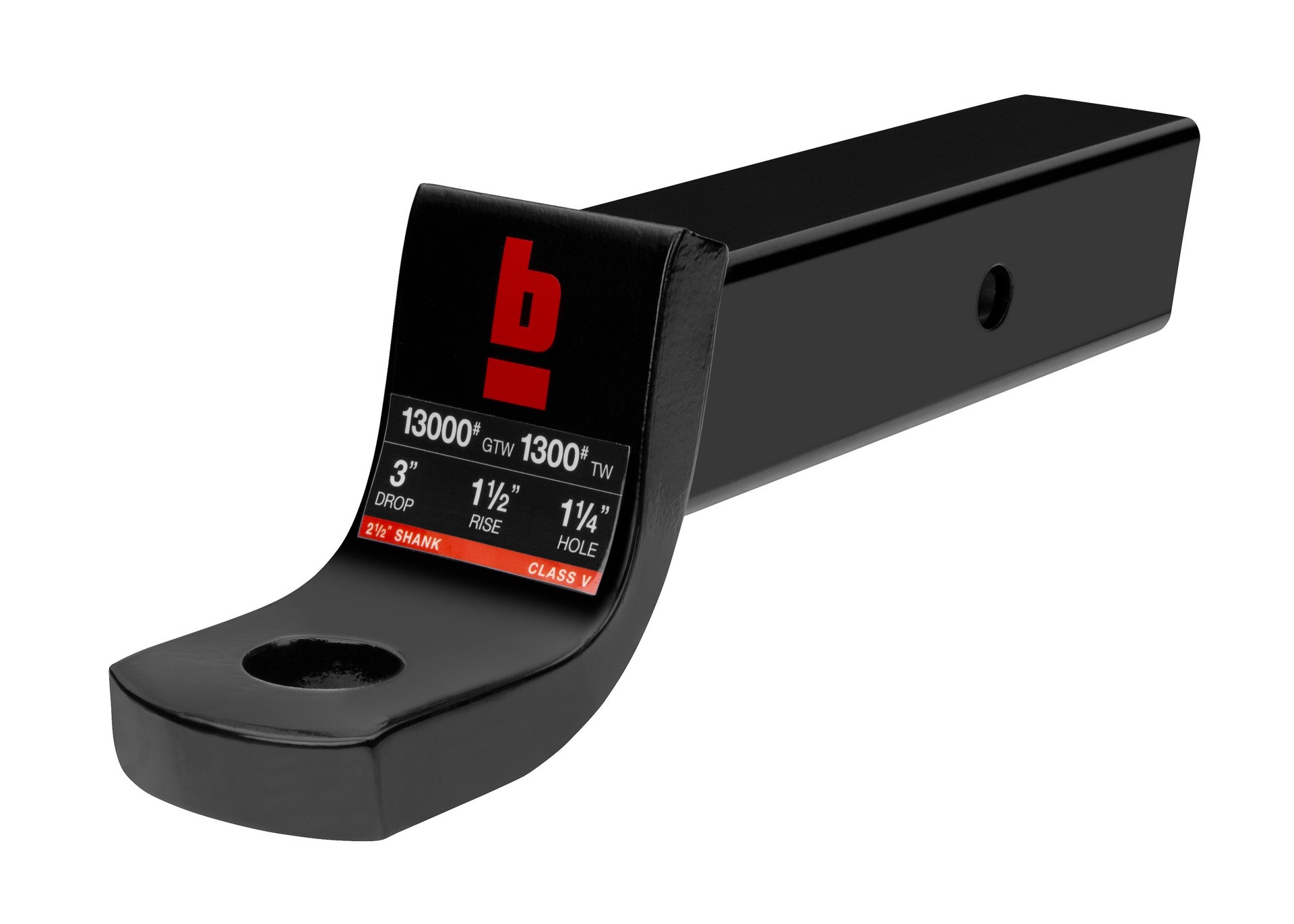Welded steel ball mount for optimal durability. Accommodates all common hitch balls. Exceeds SAE J684 towing standards. Corrosion resistance black powder coat finish.