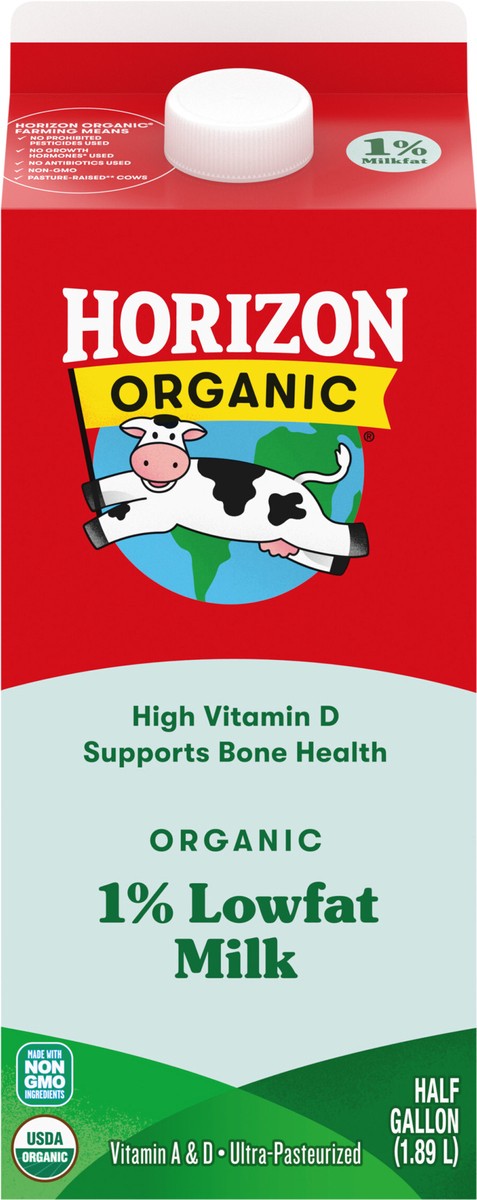 Horizon Organic 1% Lowfat High Vitamin D Milk Carton - 0.5 Gallon