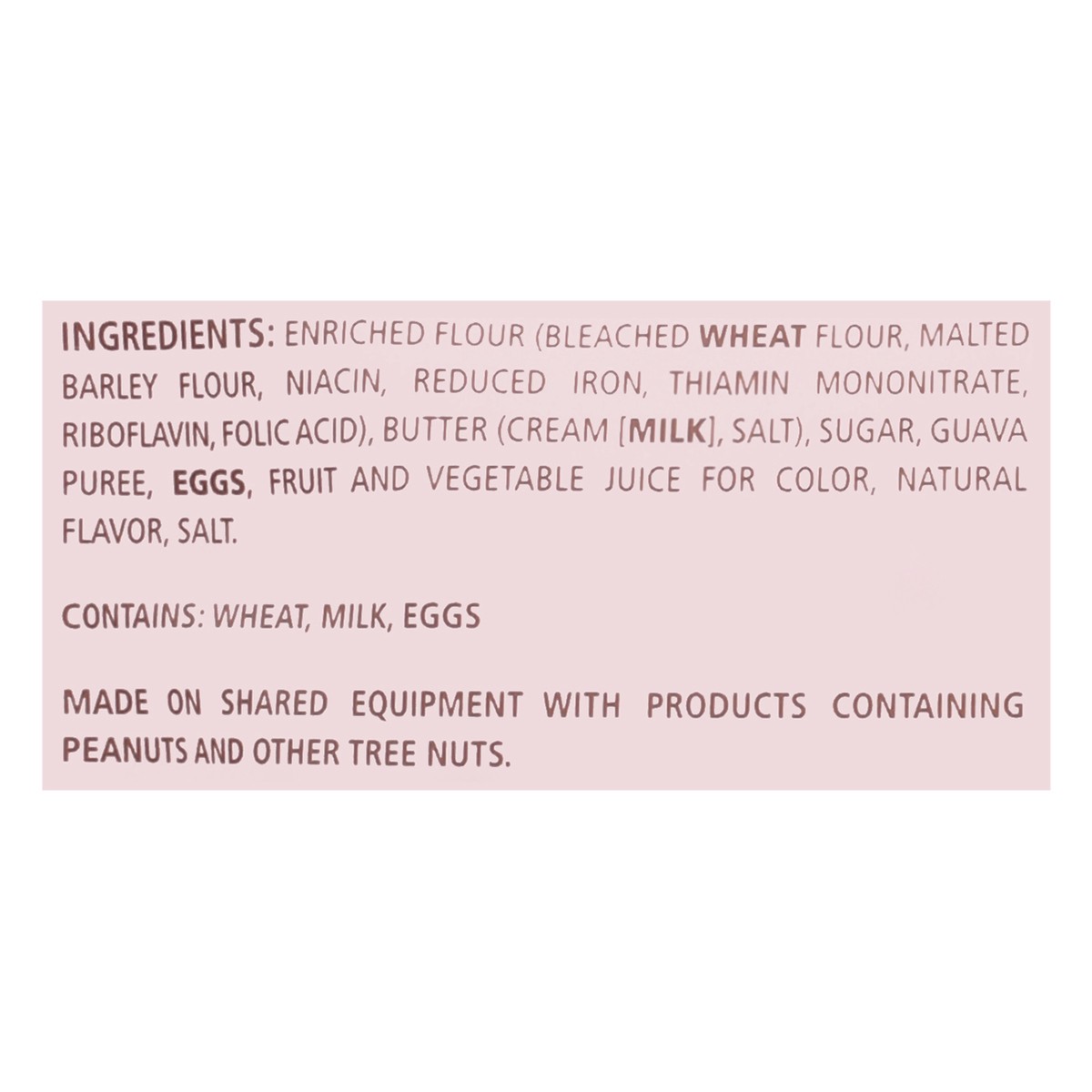 Enriched Flour (Bleached Wheat Flour, Malted Barley Flour, Niacin, Reduced Iron, Thiamin Mononitrate, Riboflavin, Folic Acid), Butter (Cream [Milk), Salt), Sugar, Guava Puree, Eggs, Fruit and Vegetabl…