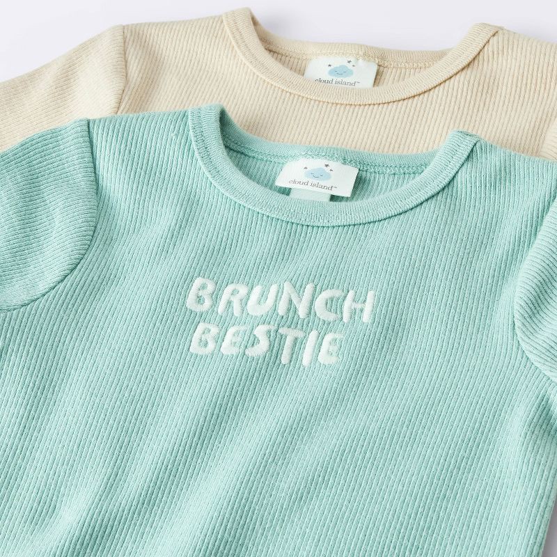 Baby 2pk Brunch Jacquard Short Sleeve Romper - Cloud Island™ Green/Tan 0-3M