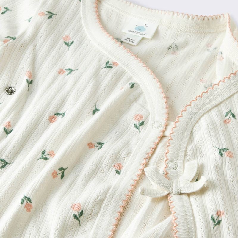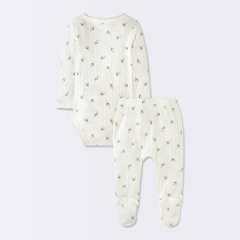 Baby Girls' 2pc Floral Pointelle Top & Bottom Set - Cloud Island™ Ivory 0-3M