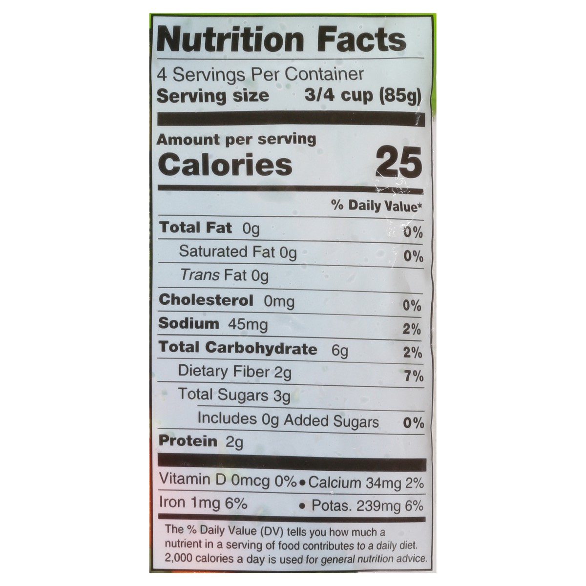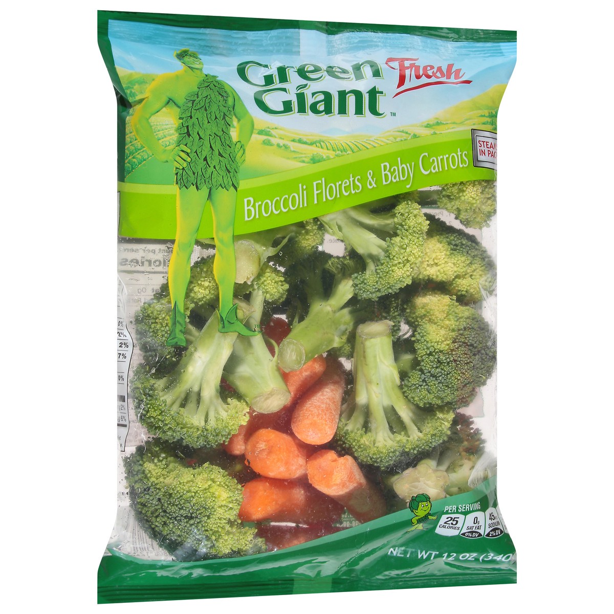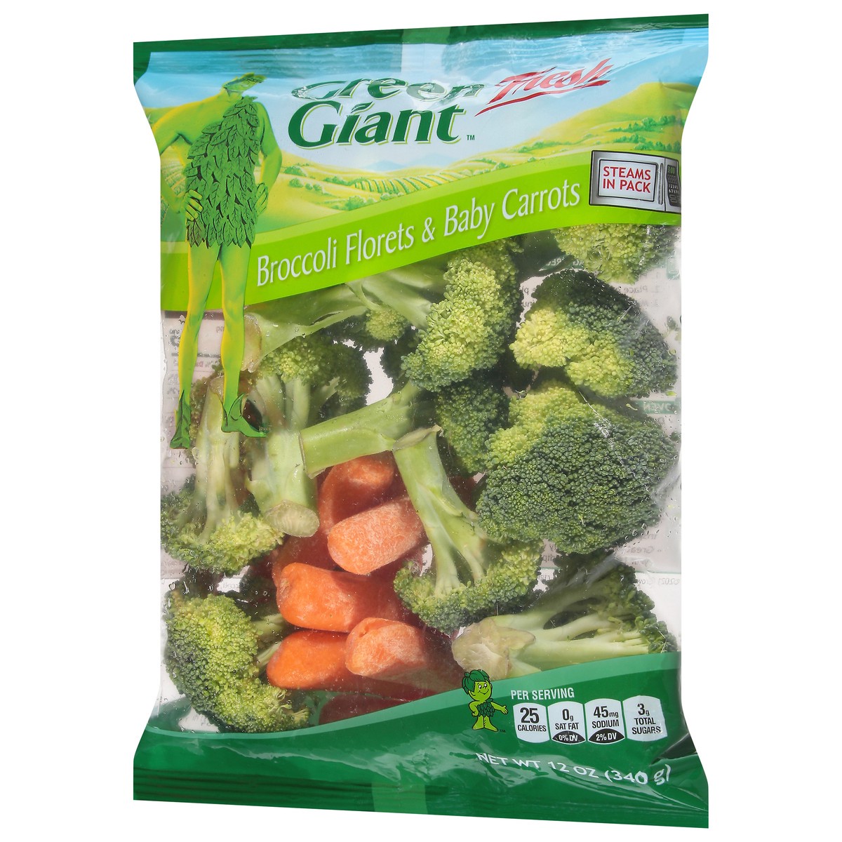 Steams in pack. Per Serving: 30 calories; 0 g sat fat (0% DV); 40 mg sodium (2% DV); 2 g sugars; vitamin A (120% DV); vitamin C (80% DV). Find Delicious Recipes: GreenGiantFresh.com. Questions or comm…