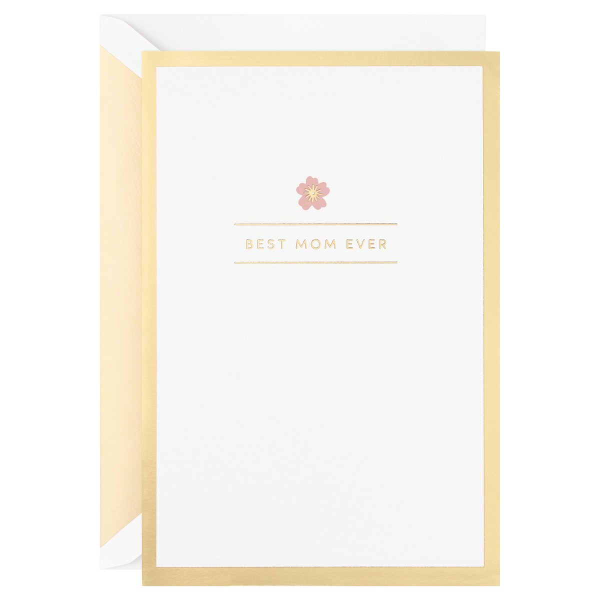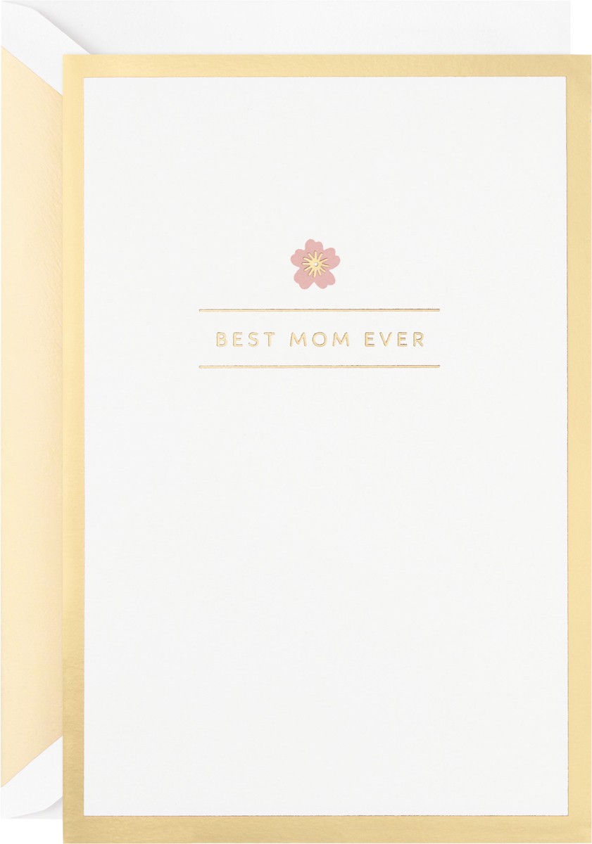 - Cover features a pink flower on a white background, accented with a gold foil border. Inside features a beautiful 3D pop-up of flowers and "Best mom ever" lettering, and the sentiment: "Our family is so lucky to have you. Happy Mother''s Day."