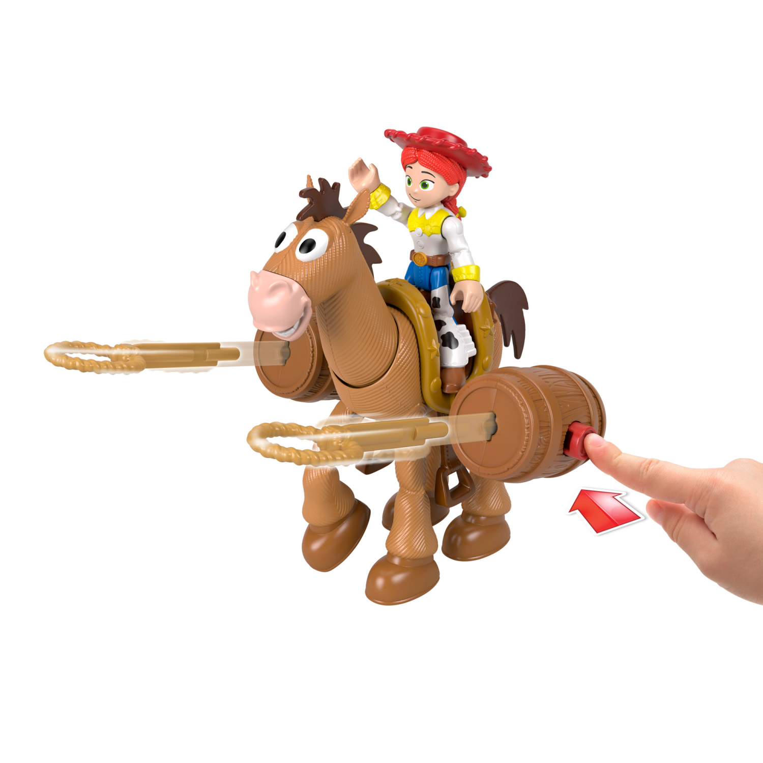 Young Toy Story fans can recreate their favorite movie moments or imagine new adventures with the Imaginext Disney and Pixar Toy Story Jessie & Bullseye playset. The set comes with a 3-inch Jessie act…