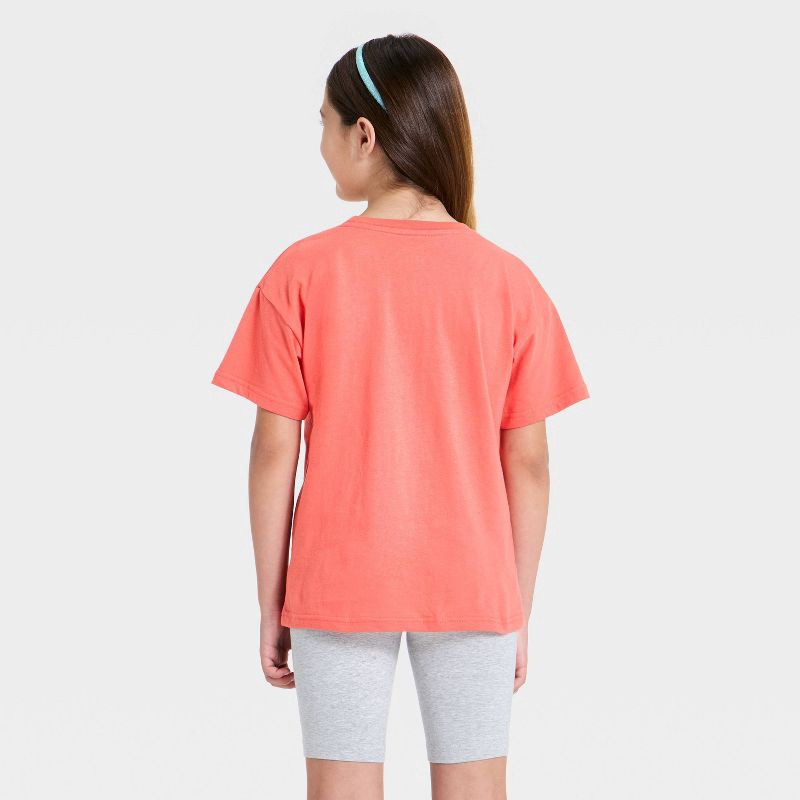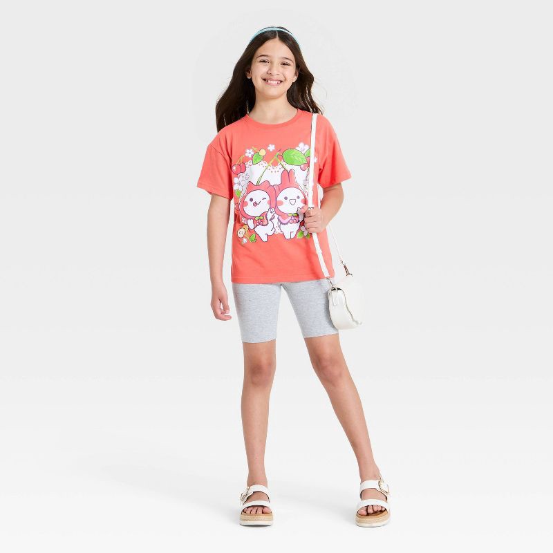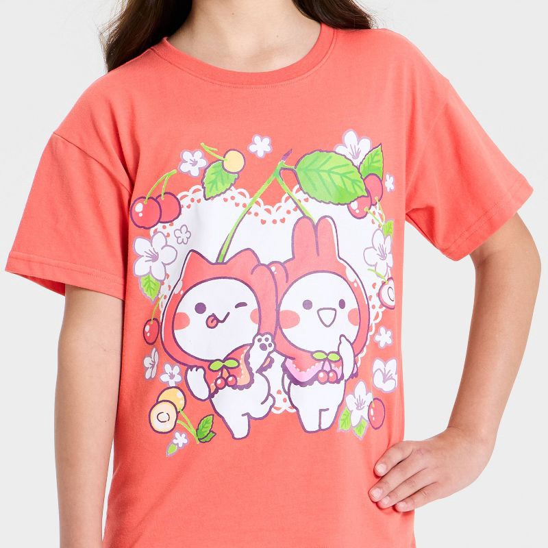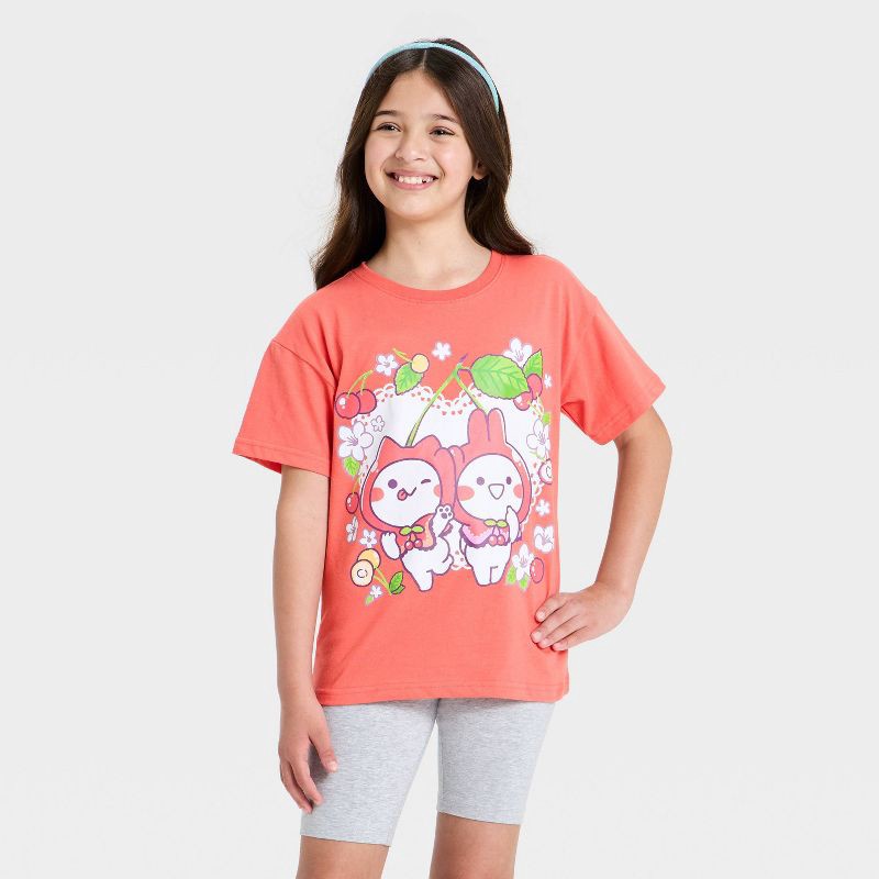 Girls' Mimi & Neko Flowers and Fruits Short Sleeve Graphic T-Shirt - Pink L