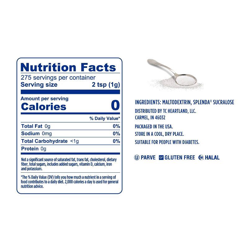 Splenda zero-calorie granulated sweetener is a perfect zero-calorie sugar alternative. Great for sweetening all of your favorite recipes like baked goods, glazes, dressings and drinks! Use it anywhere…