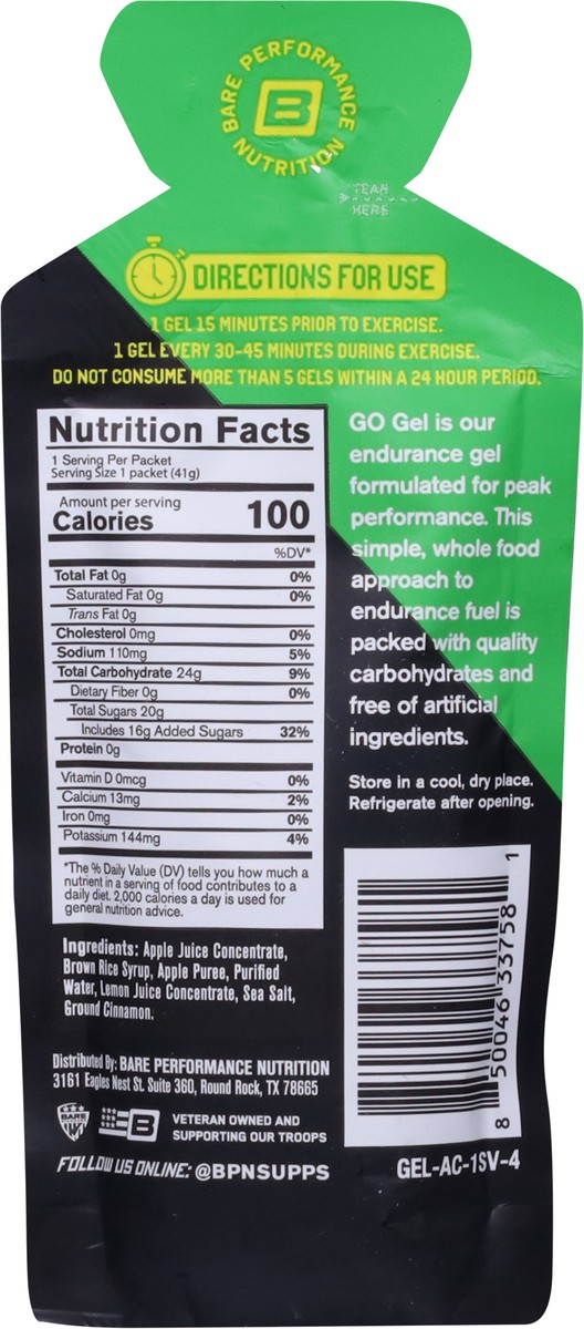 Bare Performance Nutrition Apple Cinnamon Go Gel / Endurance Gel - 1.45 oz