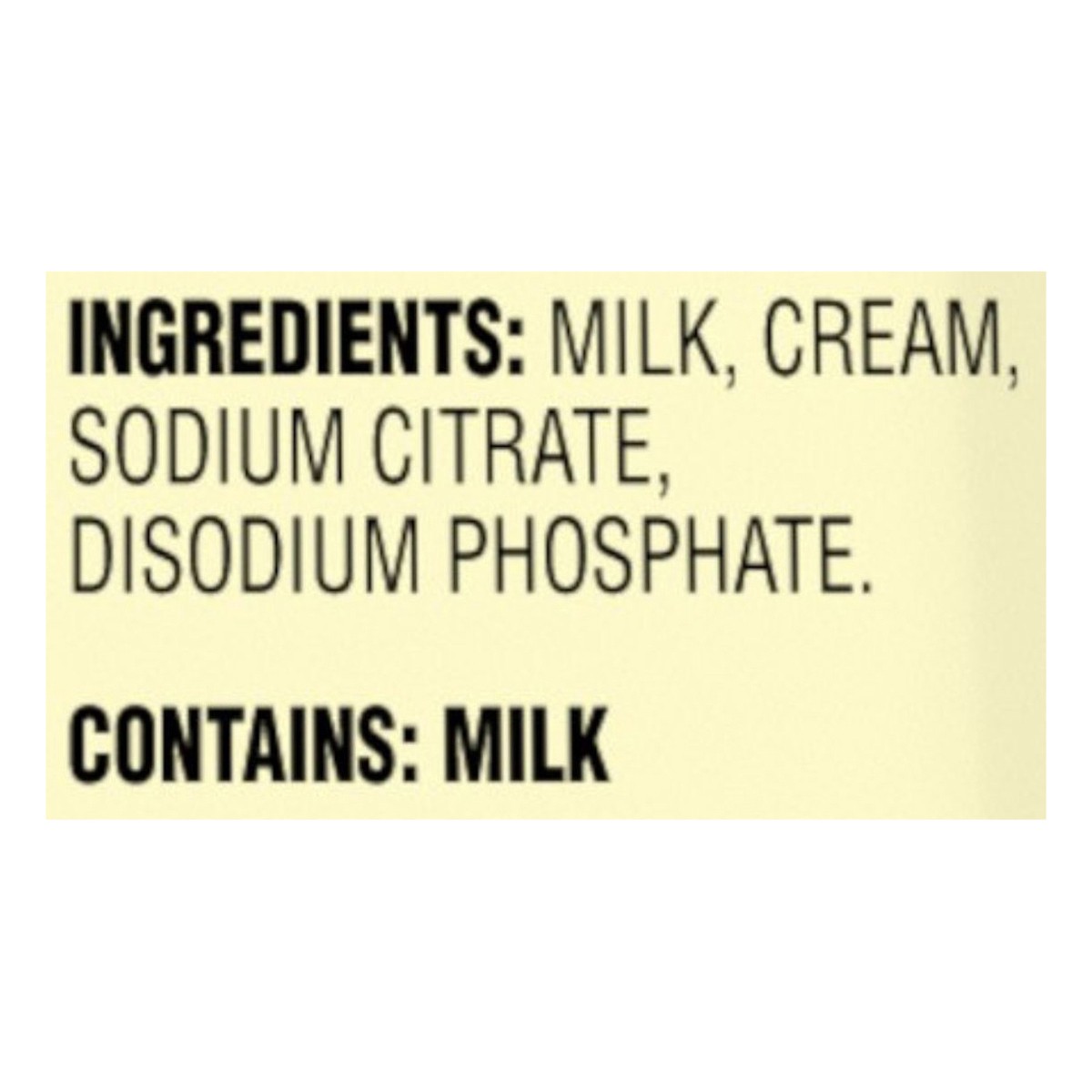 Milk, Cream, Sodium Citrate, Disodium Phosphate.