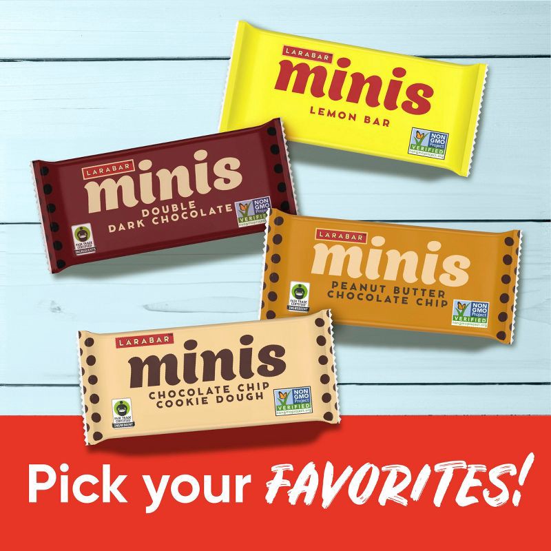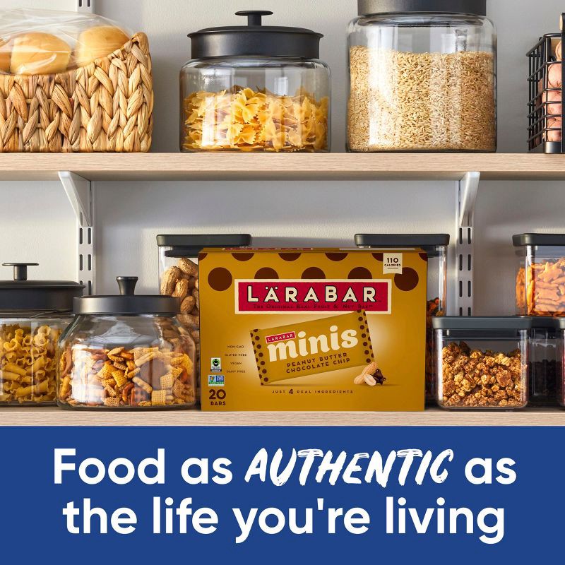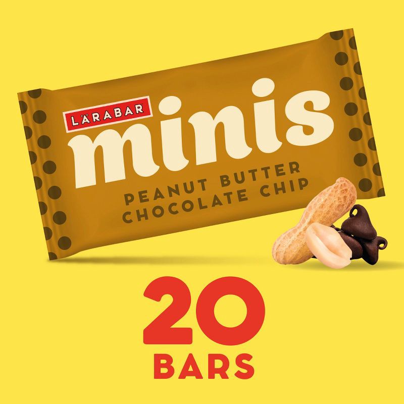 - CONTAINS: One big cardboard box of Larabar Minis Peanut Butter Chocolate Chip Fruit and Nut Bars, 20 bars, 15.6 oz; Perfect for instant snacking
