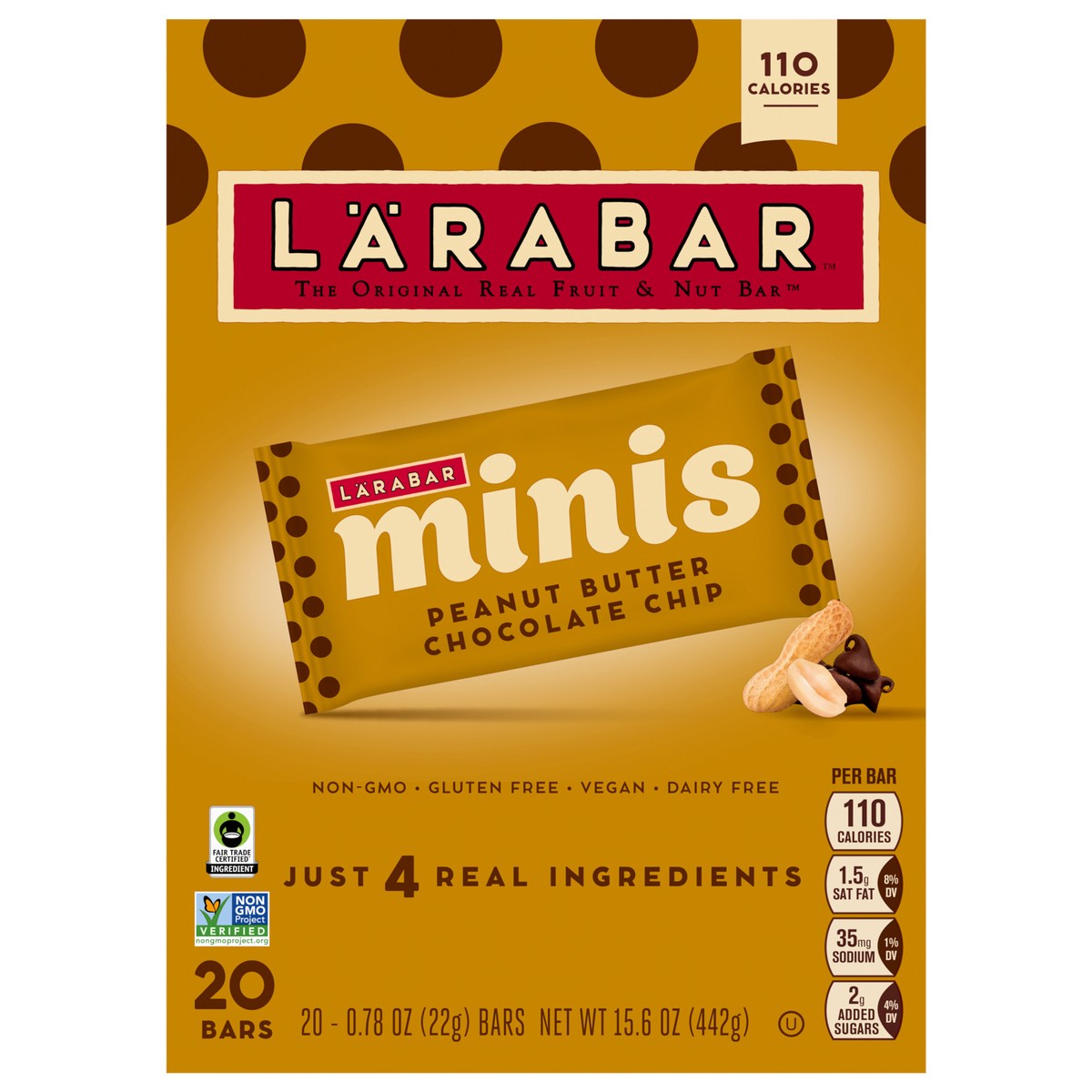 LÄRABAR Peanut Butter Chocolate Chip Mini Bars, Gluten Free Vegan, 20 ct