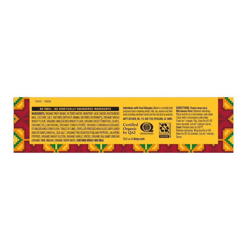 Organic Pinto Beans, Filtered Water, Monterey Jack Cheese (Pasteurized Milk, Culture, Salt, Enzymes), Organic Whole Wheat Flour, Organic Unbleached Wheat Flour, Organic Diced Tomatoes, Olives, Organic…