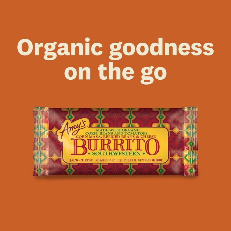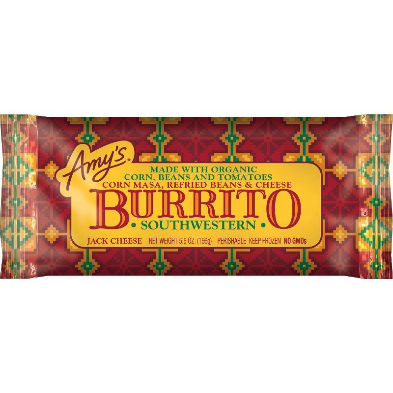 - With a soft tortilla and a cheesy, savory filling, Amy's Southwestern Burritos are a tasty option for lunch, dinner or a quick snack