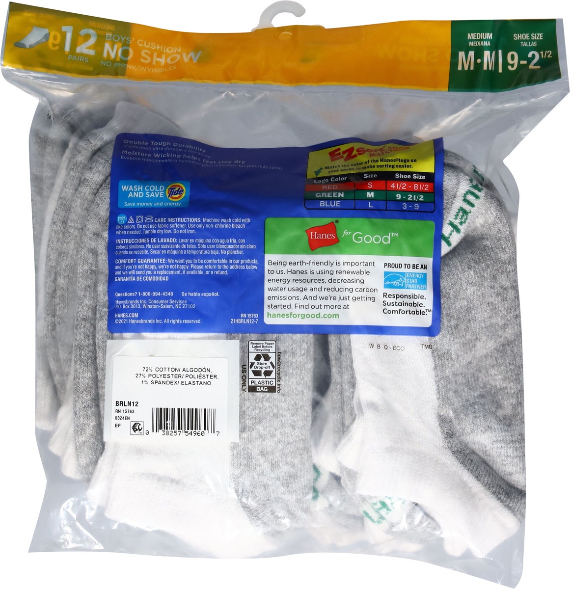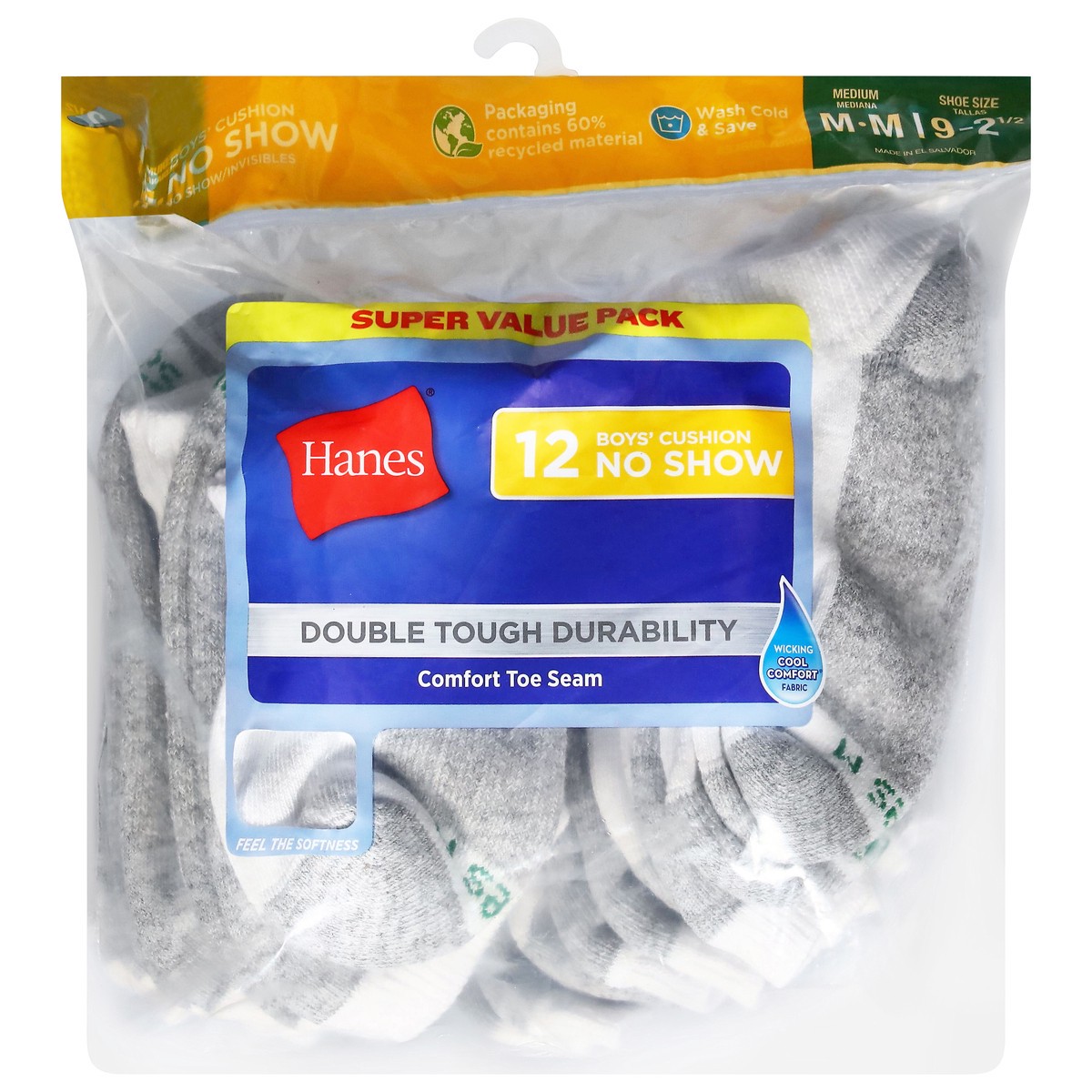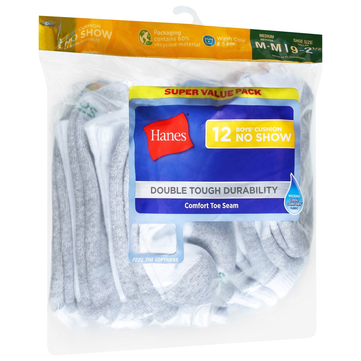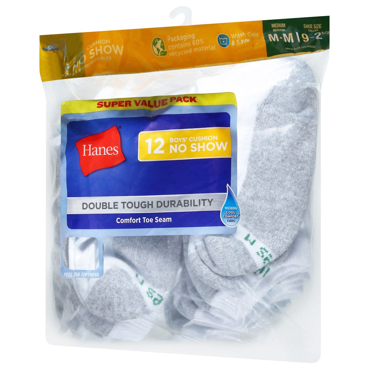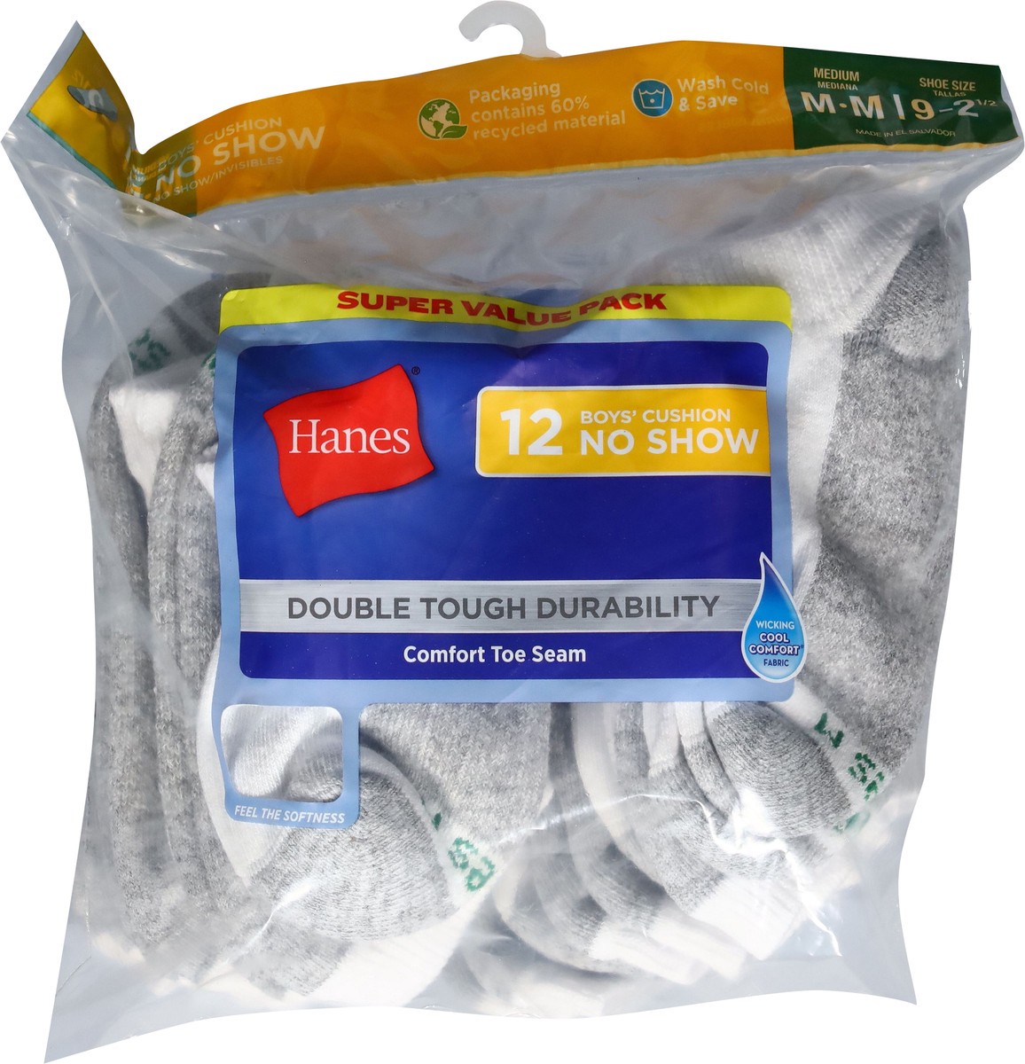 Hanes Boys' No-Show Cushion Socks, White, 12 Pack, Size Medium