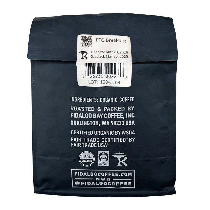 Fidalgo Coffee Roasters Whole Bean Medium Dark Organic Breakfast Coffee 12 oz