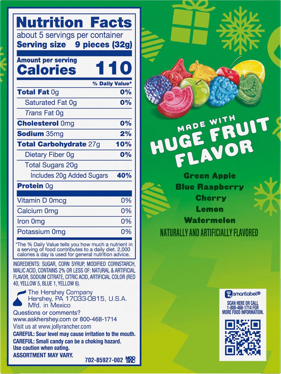 - New Year's bashes and other winter celebrationsBring some extra color to your holiday season with five flavorful gummy Christmas candy options just as delicious in stockings as they are in the rest of the year's treat selectionsPair the vibrant colors of JOLLY RANCHER gummies with your favorite covered Christmas candy dish for a decoration that looks almost as good as it tastes