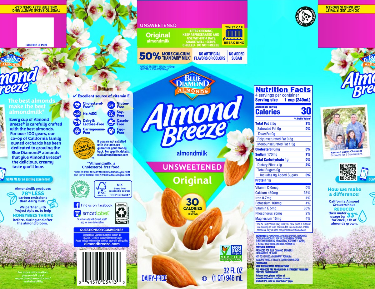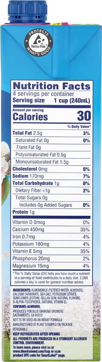 Almond Breeze Unsweetened Original Shelf Stable Almond Milk - 32 Oz