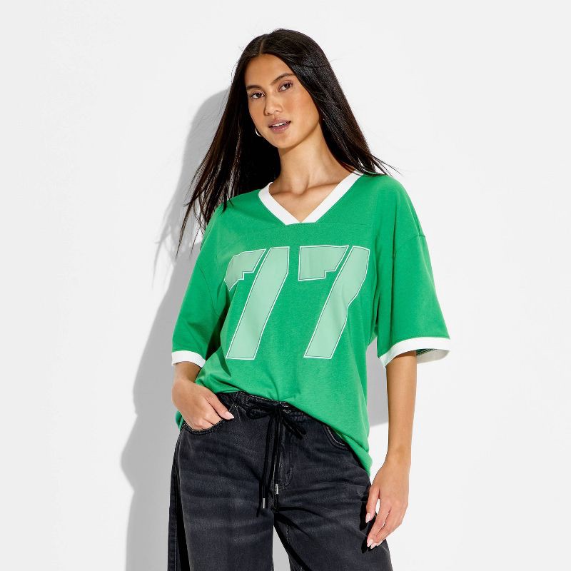 Grayson Threads Women's Lucky Football Oversized Short Sleeve Graphic T-shirt - Emerald Green XXL