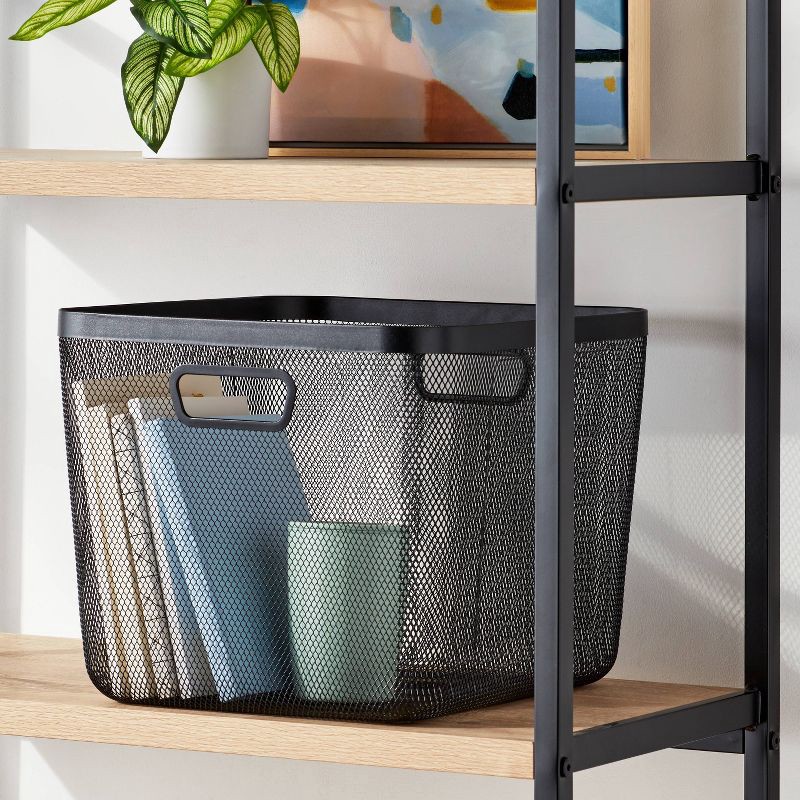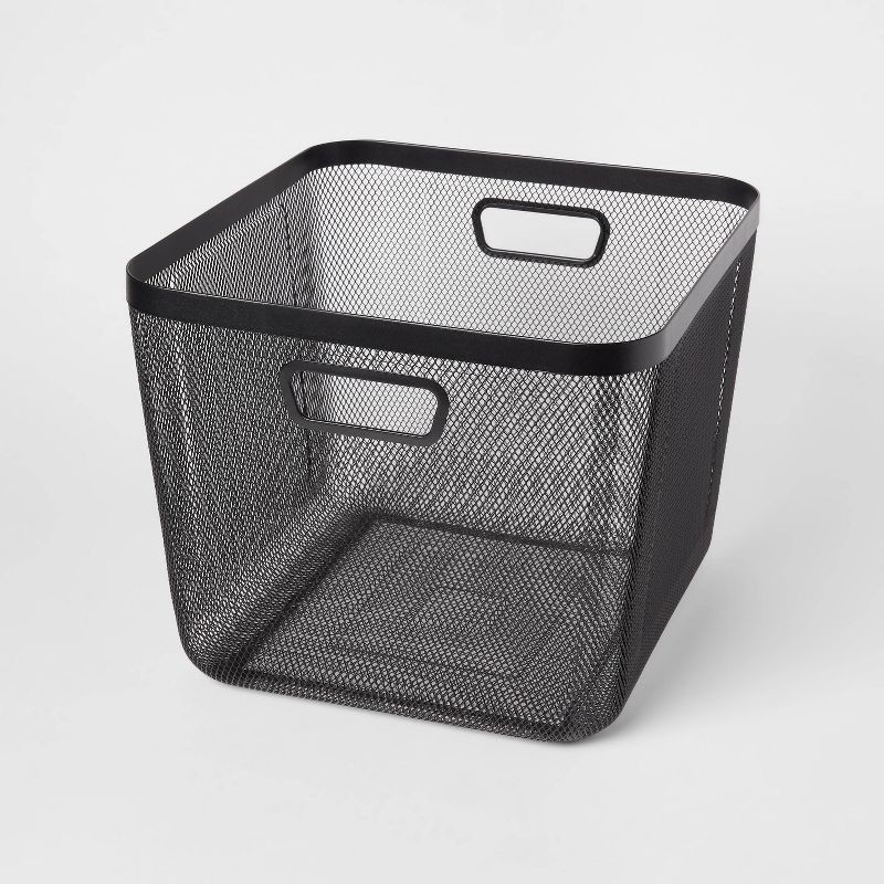 Large Metal Mesh Bin Black - Brightroom™: Carbon Steel, Rectangle, Storage & Organization with Handles