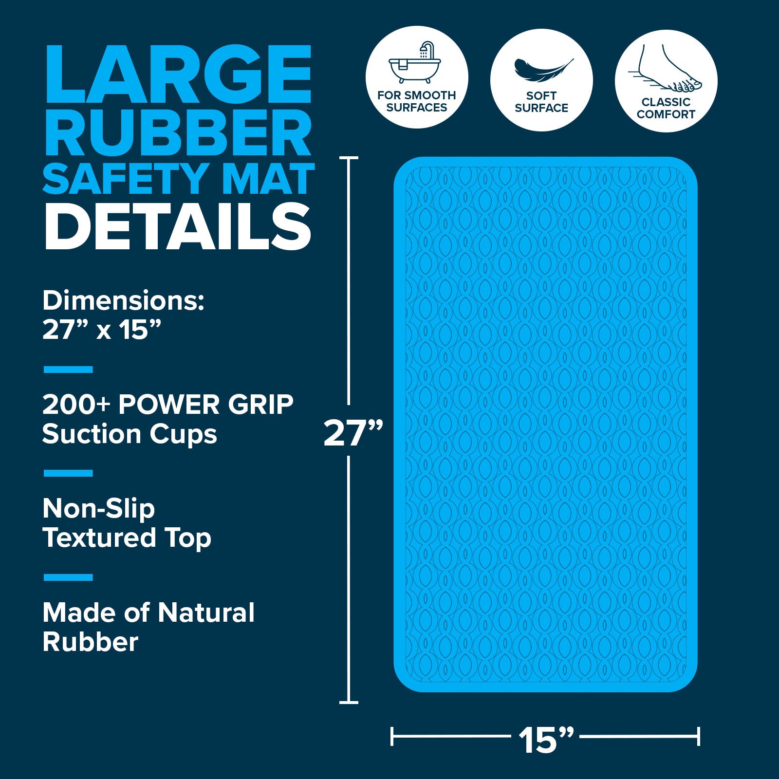 Generous Coverage: SlipX Solutions' large rubber safety mat provides generous extended coverage throughout your tub or shower area, allowing you to move freely without worry and enjoy generous non-sli…