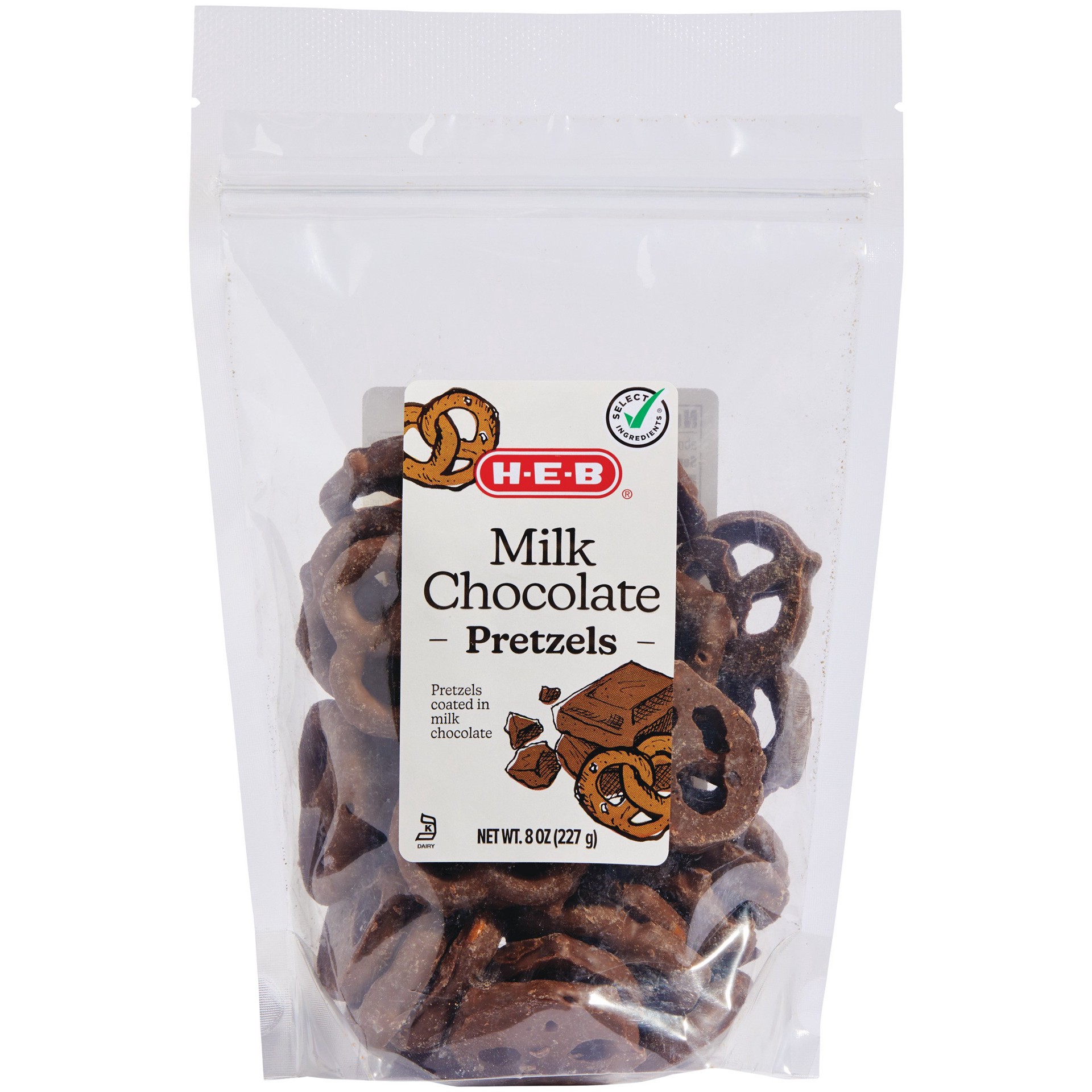 Deliciously dipped in milk chocolate, H-E-B pretzels are a tempting salty-sweet snack. Bite-sized and easy to munch on, these crunchy pretzel twists are a fun addition to packed lunches or treat bags.…