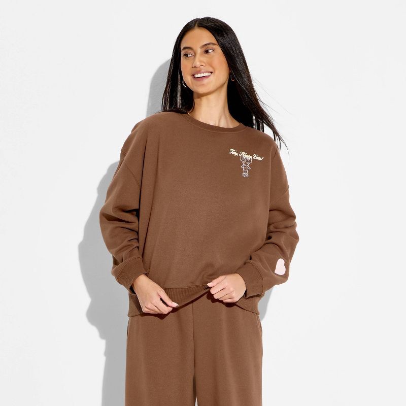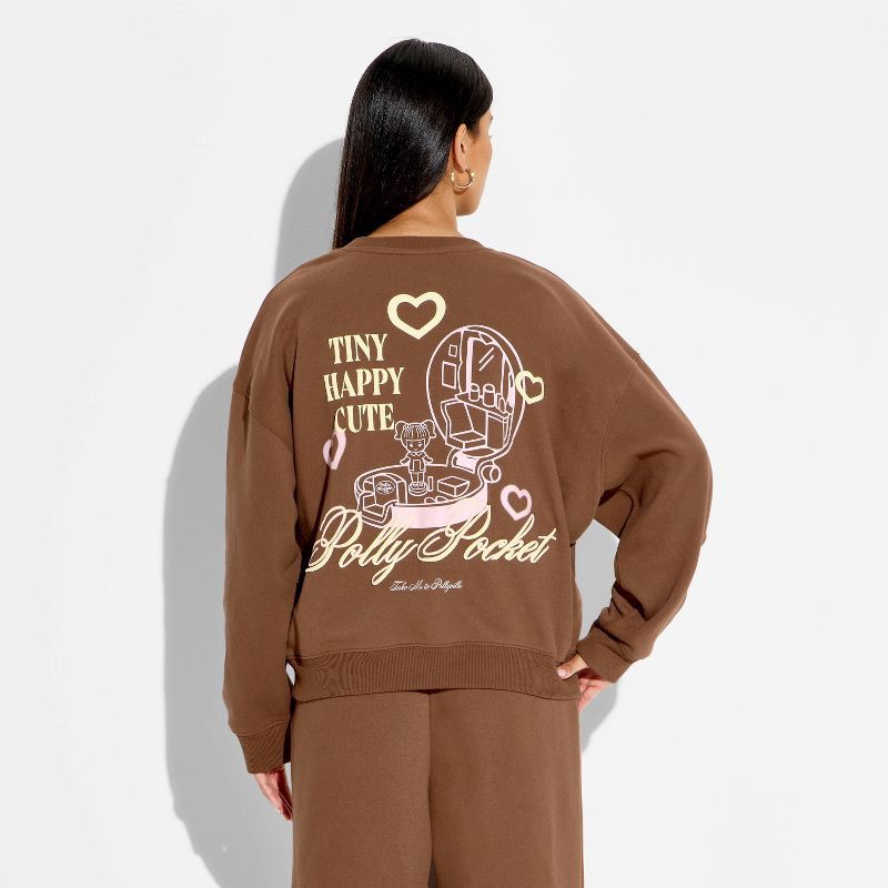 Women's Polly Pocket Fleece Graphic Pullover Sweatshirt - Brown XS