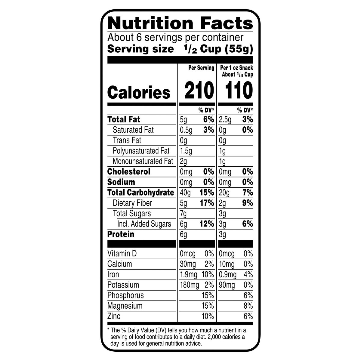 Whole Grain Oats, Brown Rice Syrup, Almonds, Cane Sugar, Oat Bran, Brown Rice, Ground Flax Seeds, Natural Flavors.
