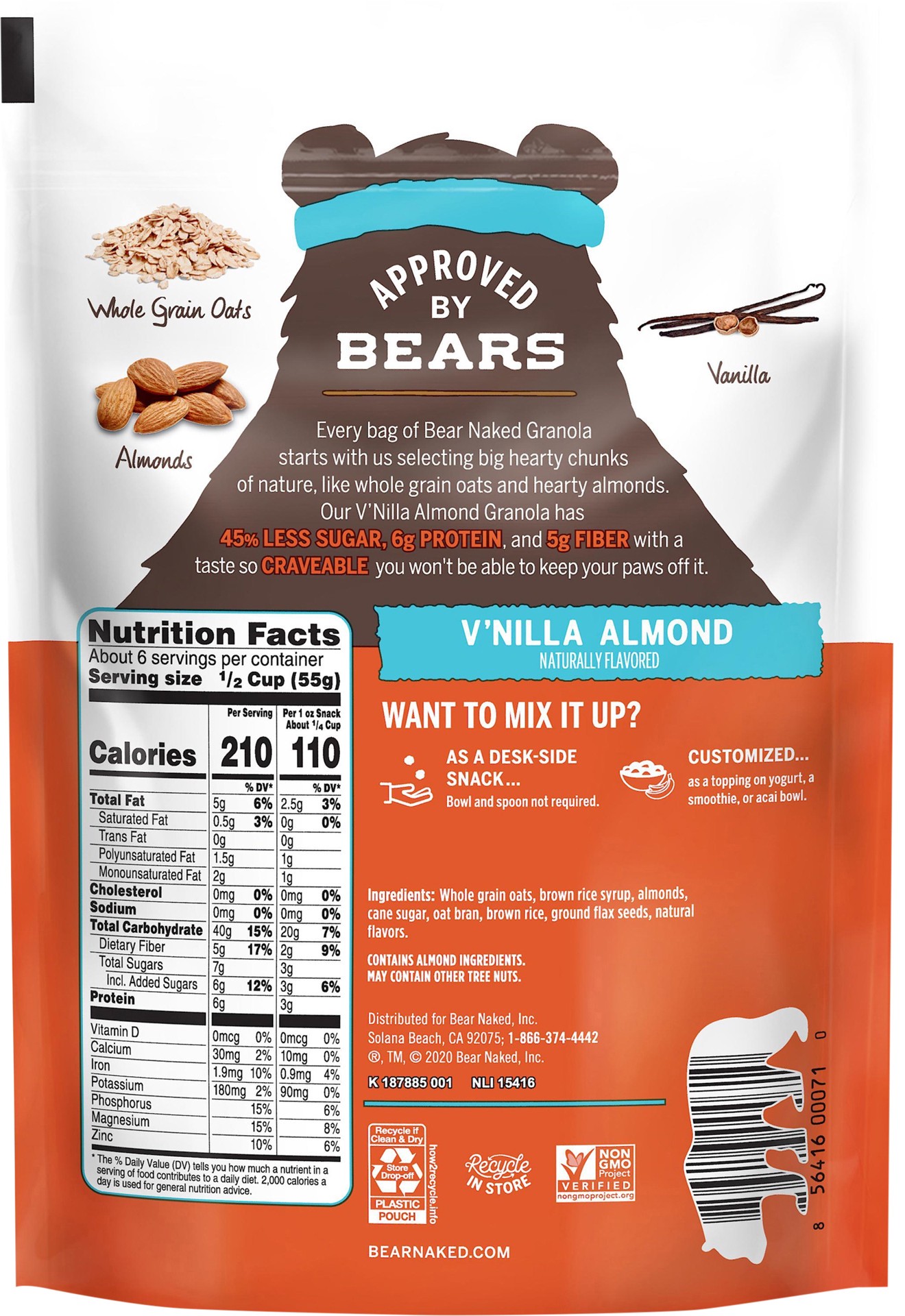 Every bag of granola starts with us foraging for irresistible flavors and bountiful chunks of goodness. Bear Naked Vanilla Almond Crisp granola is soft-baked and blended with whole grain oats, brown s…