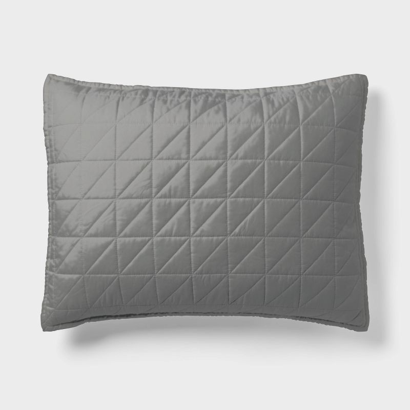 Add an elegant finishing touch to your bedding with this Standard Microfiber Quilt Pillow Sham from Room Essentials™. This standard-size sham showcases a microfiber front featuring diamond-stitched qu…