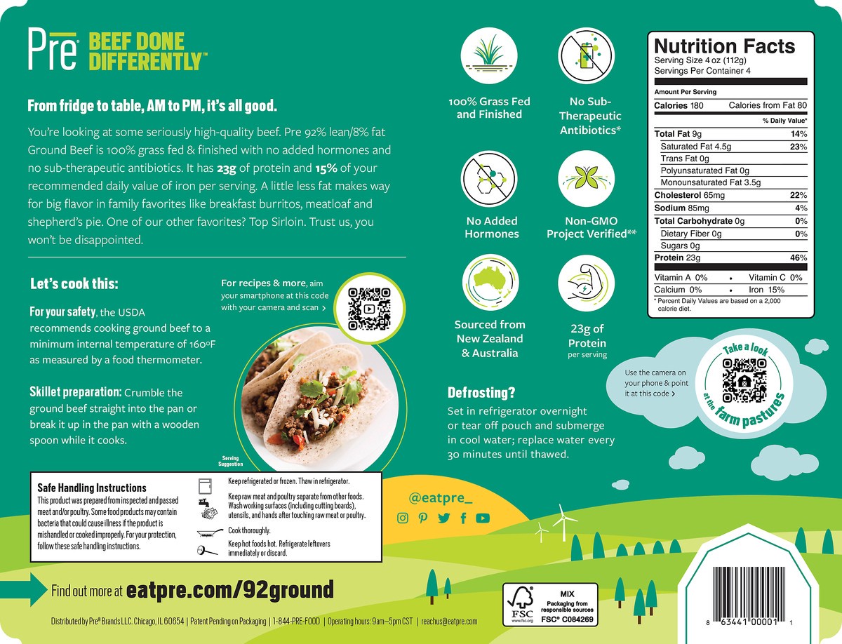 Pre Beef Grass Fed 92% Lean Ground Beef - 16 Oz