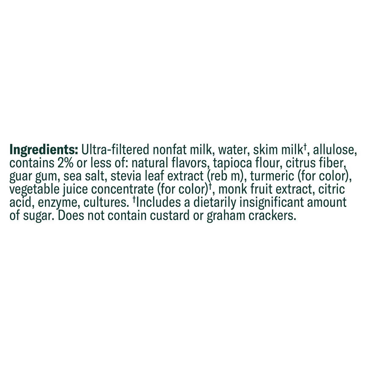 Ultra-Filtered Nonfat Milk, Water, Skim Milk (Includes a Dietarily Insignificant Amount of Sugar), Allulose, Contains 2% or Less of: Natural Flavors, Tapioca Flour, Citrus Fiber, Guar Gum, Sea Salt, S…