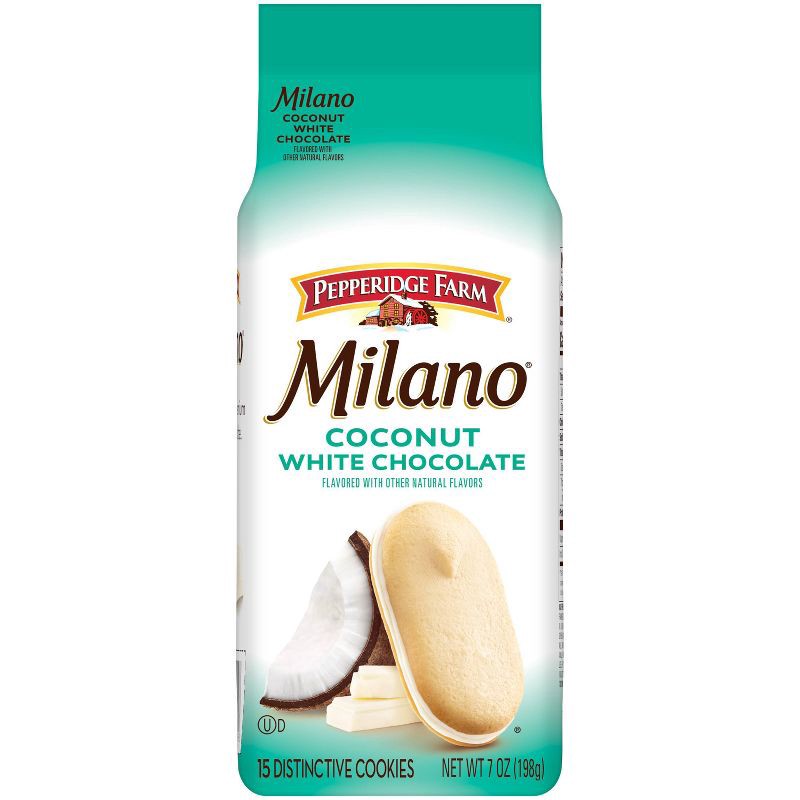 - Includes one (1) 7-ounce bag of Pepperidge Farm Milano White Chocolate Coconut flavored cookies