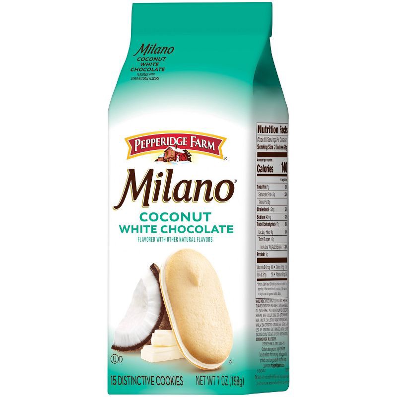 - Includes one (1) 7-ounce bag of Pepperidge Farm Milano White Chocolate Coconut flavored cookies