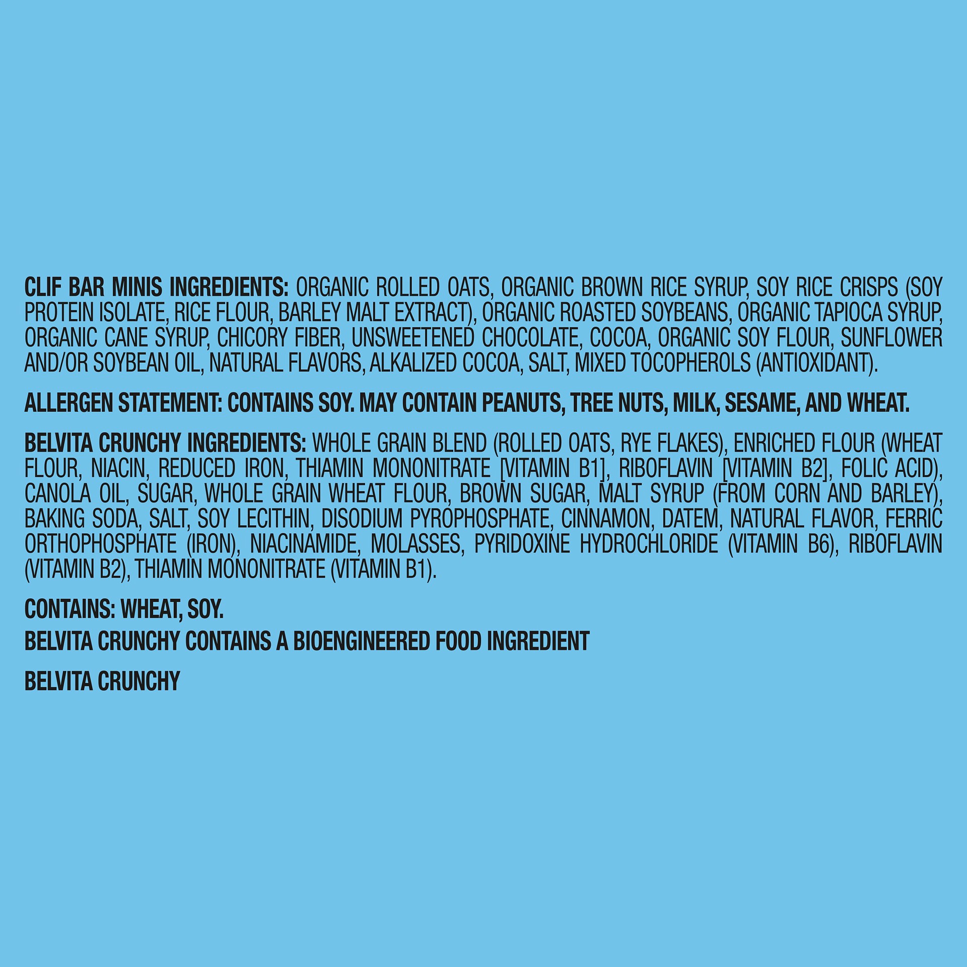 This CLIF and belVita Energy Snacks Variety Pack includes CLIF BAR Minis Chocolate Brownie Snack-Size Energy Bars and belVita Crunchy Cinnamon Brown Sugar Breakfast Biscuits to provide two snacking op…