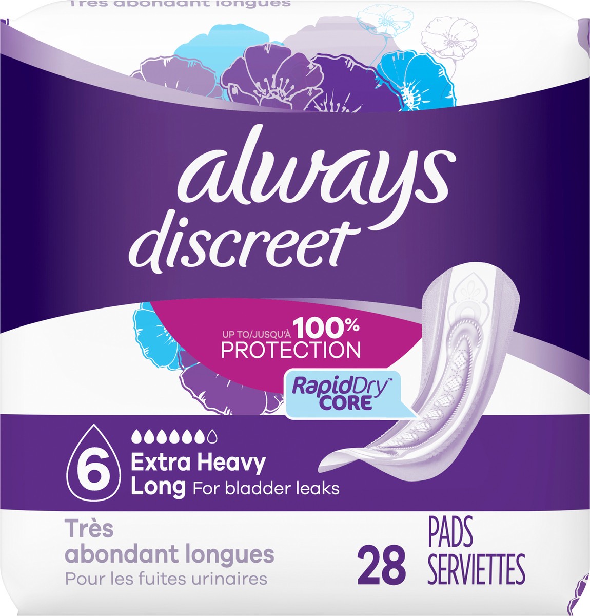 Always Discreet Extra Heavy Long Up To 100% Leak Free Protection Incontinence Pads - 28 Count