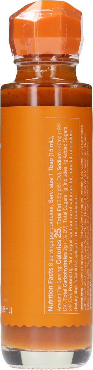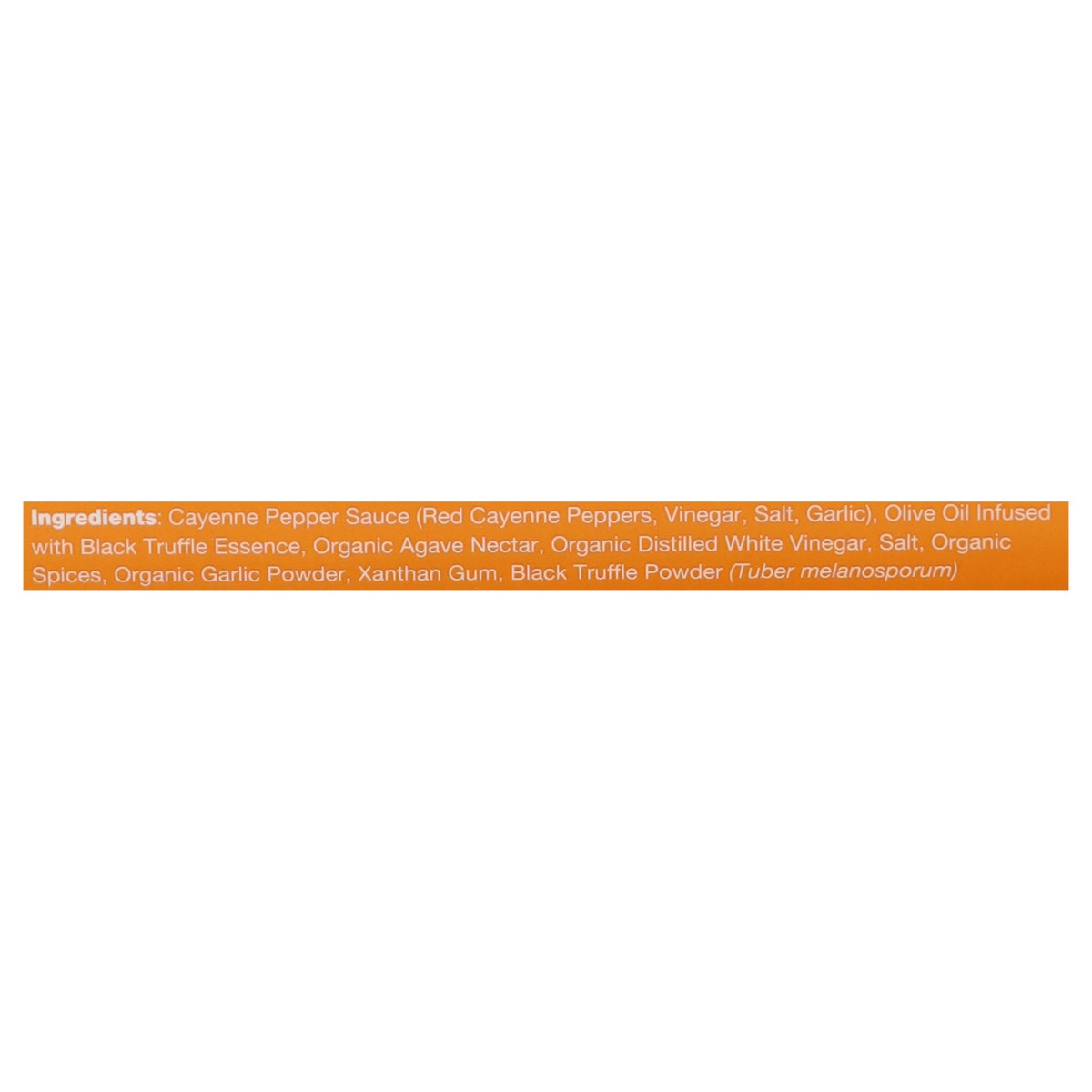 Cayenne Pepper Sauce (Red Cayenne Peppers, Vinegar, Salt, Garlic), Olive Oil Infused with Black Truffle Essence, Organic Agave Nectar, Organic Distilled White Vinegar, Salt, Organic Spices, Organic Ga…