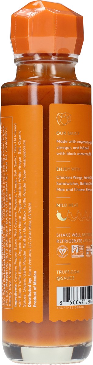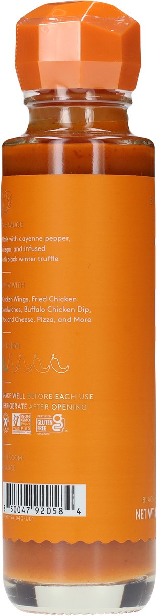 Truff Buffalo Sauce is a bright and flavorful fusion of the sophisticated elegance of black truffle, the tang of vinegar, the kick of cayenne, and the lush silkiness of olive oil.
