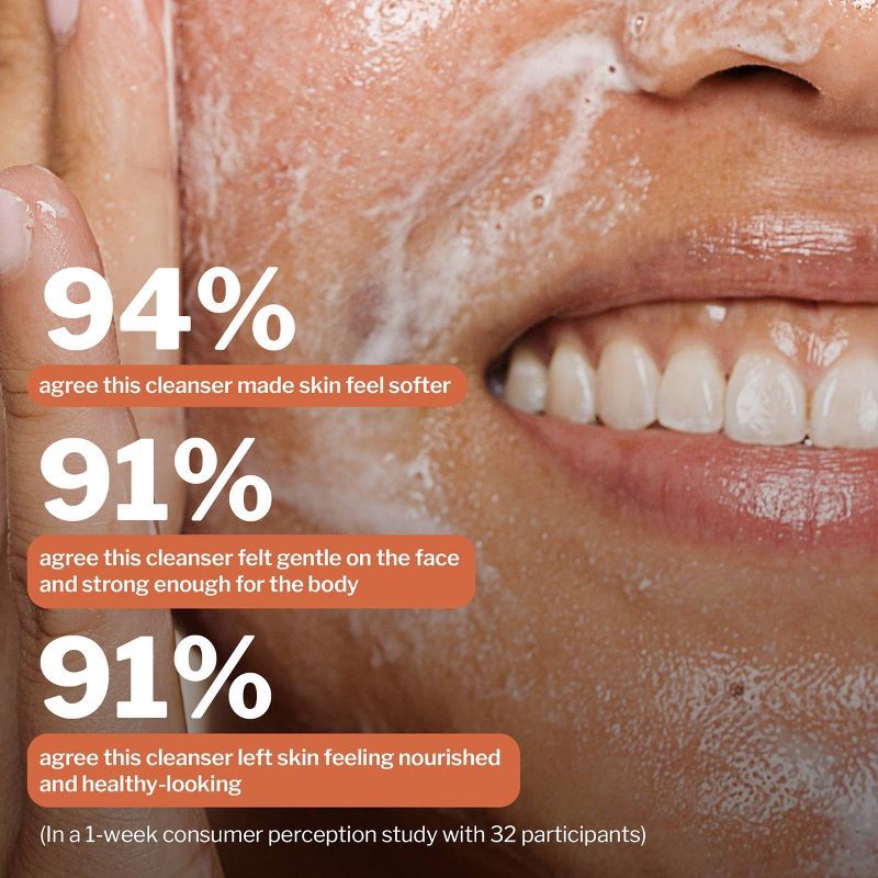 - A face-quality cleanser in a body-size bottle - no need for two products
