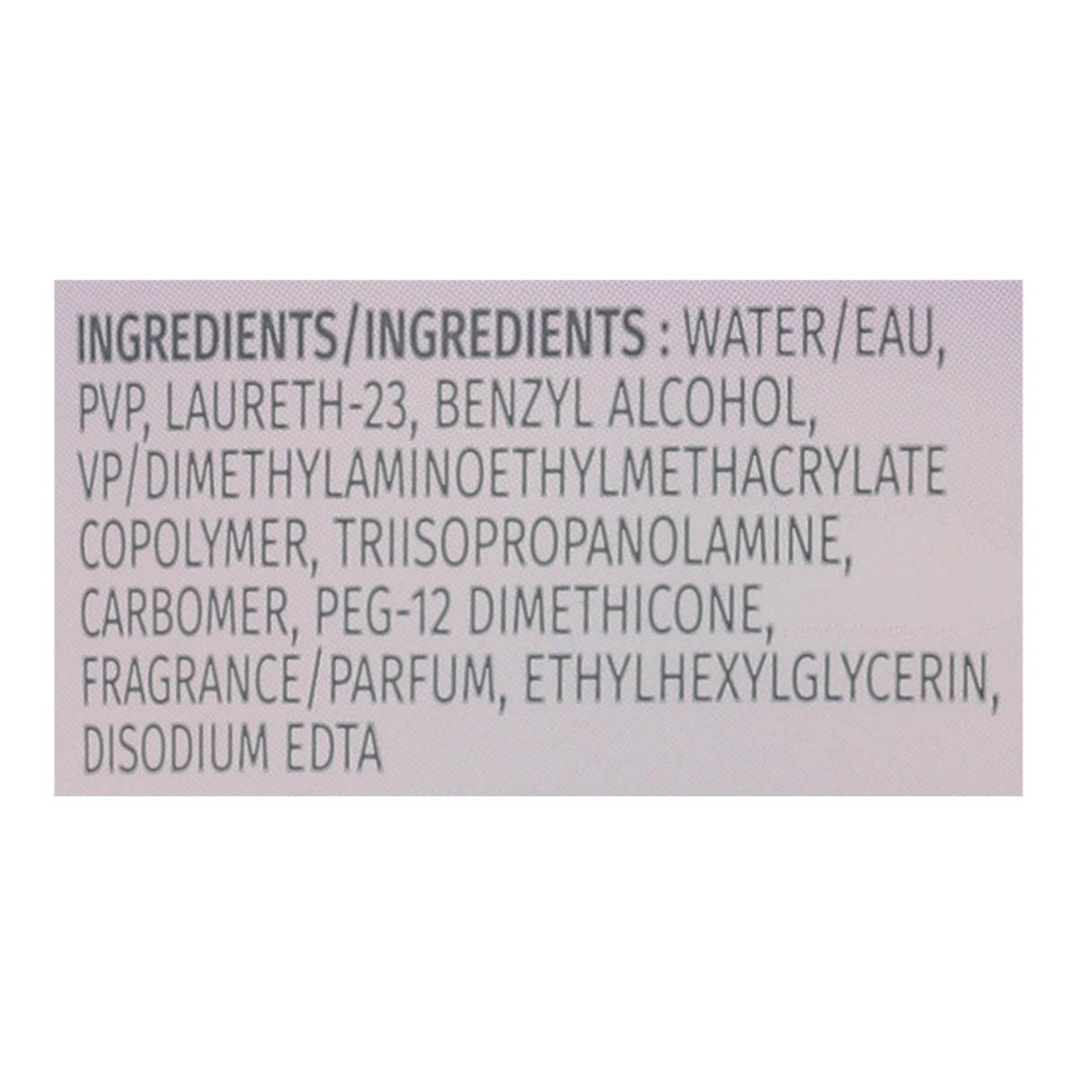 Water/Eau, PVP, Laureth-23, Benzyl Alcohol, VP/Dimethylaminoethylmethacrylate Copolymer, Triisopropanolamine, Carbomer, PEG-12 Dimethicone, Fragrance/Parfum, Ethylhexylglycerin, Disodium EDTA.