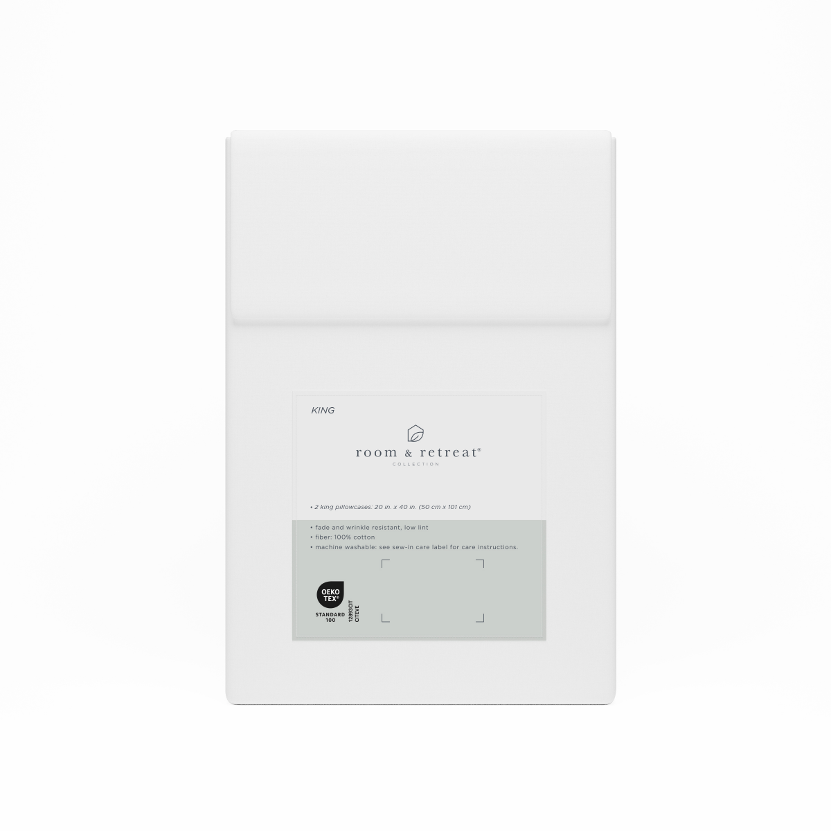 ROOM & RETREAT RR 400 Thread Counts Pillowcase, King, Set of 2, White