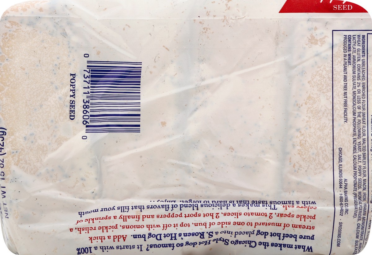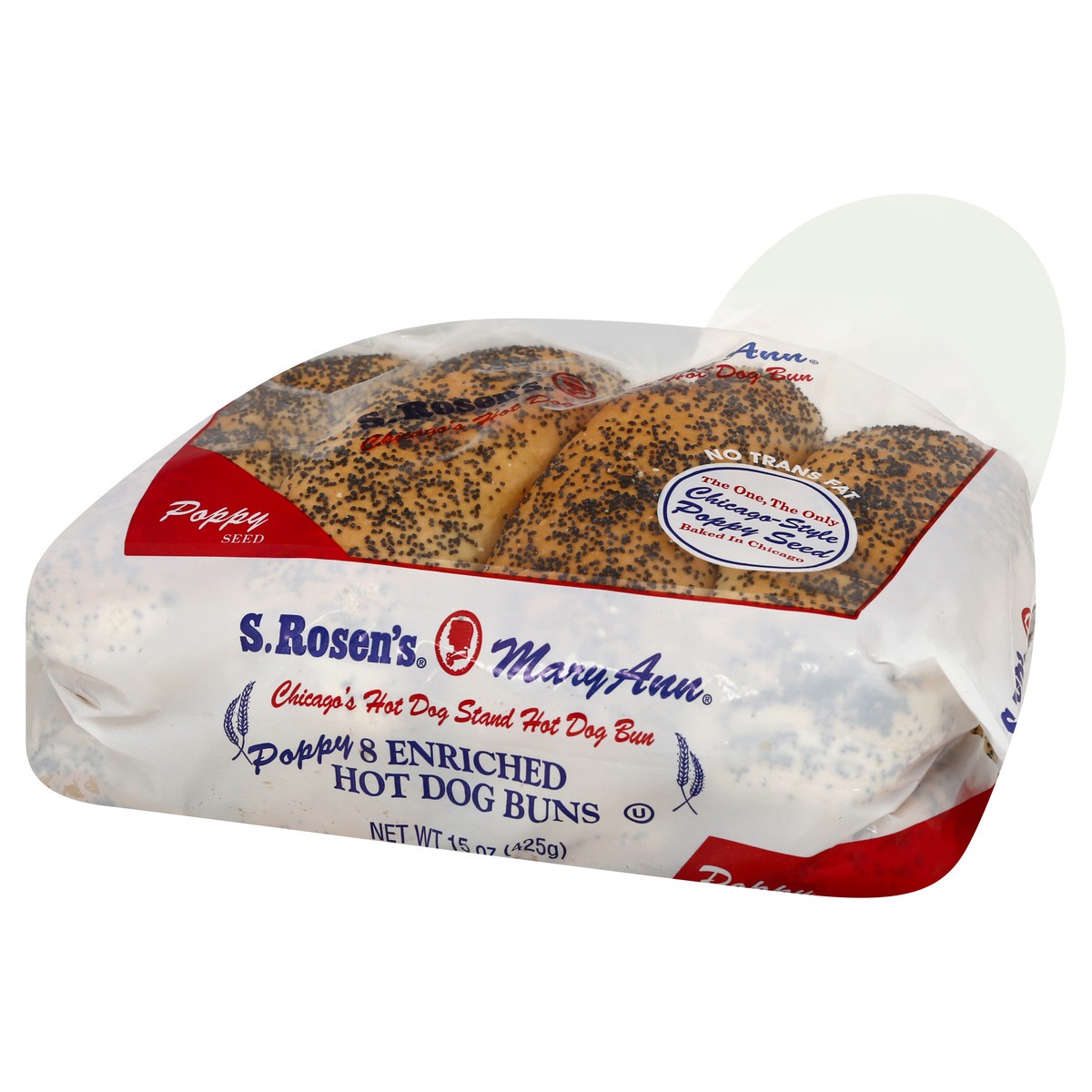 S. Rosen's Poppy Seed Hot Dog Buns - 8 ea
