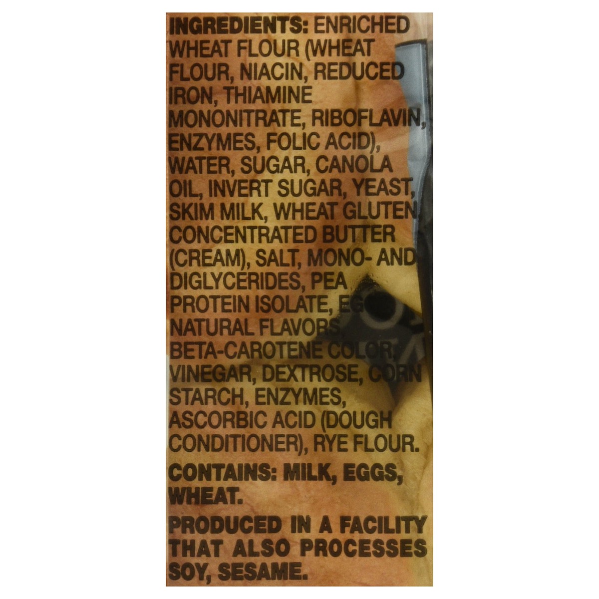 Enriched Wheat Flour (Wheat Flour, Niacin, Reduced Iron, Thiamine Mononitrate, Riboflavin, Enzymes, Folic Acid), Water, Sugar, Canola Oil, Invert Sugar, Yeast, Skim Milk, Wheat Gluten, Concentrated Bu…