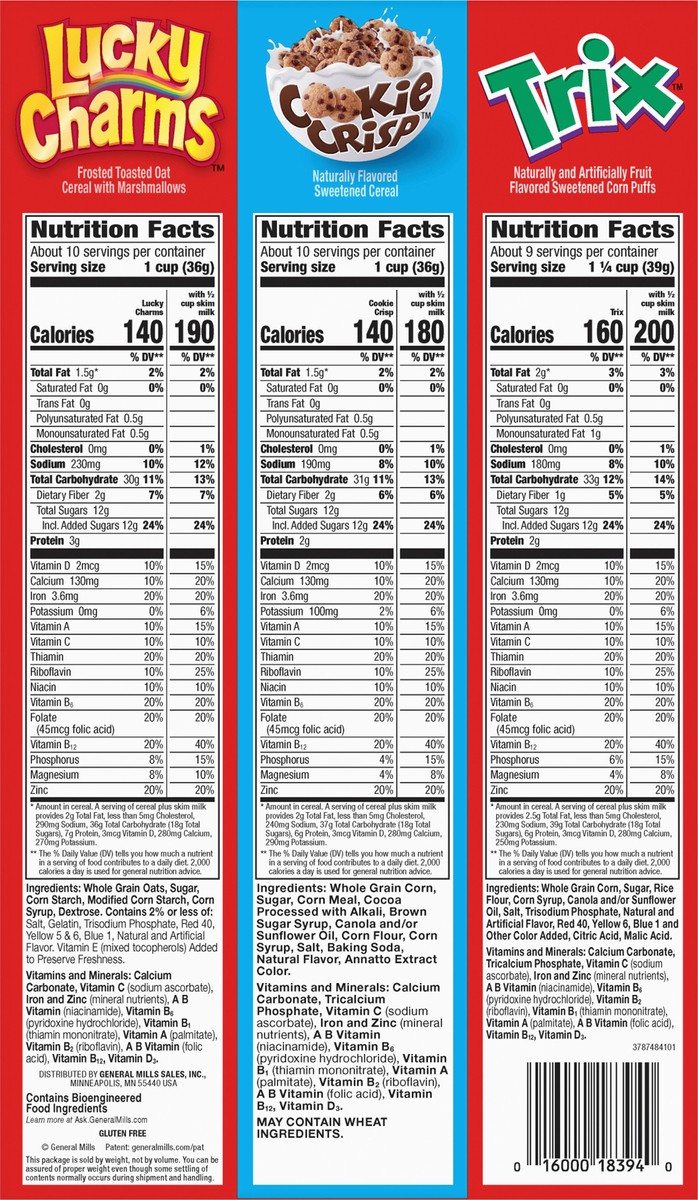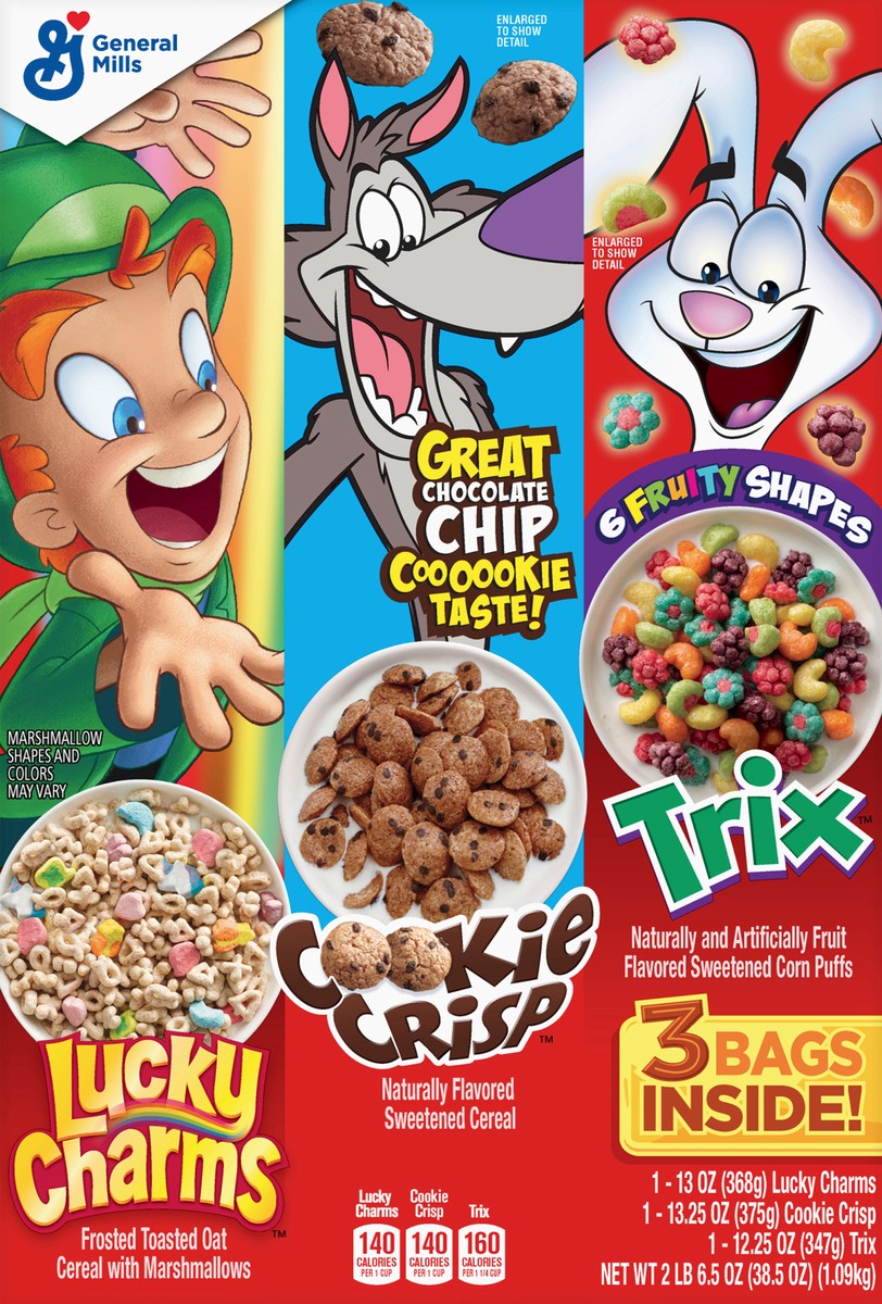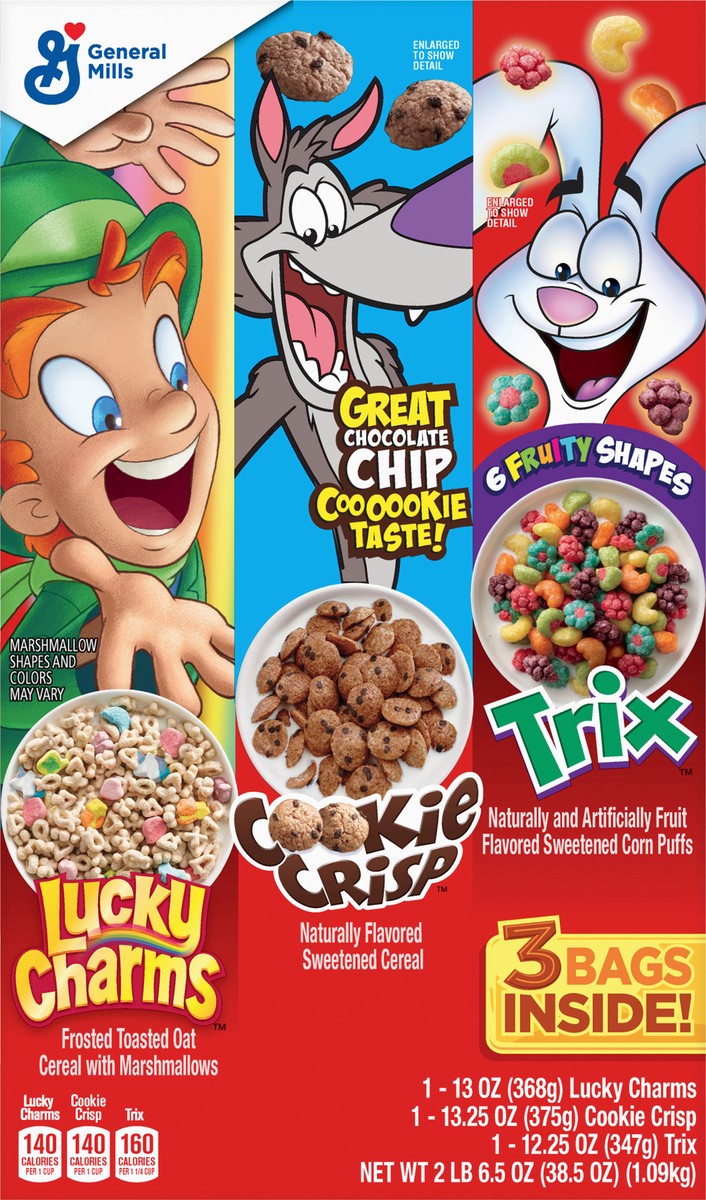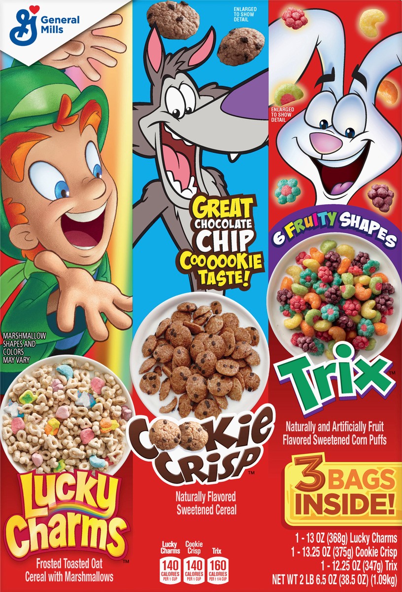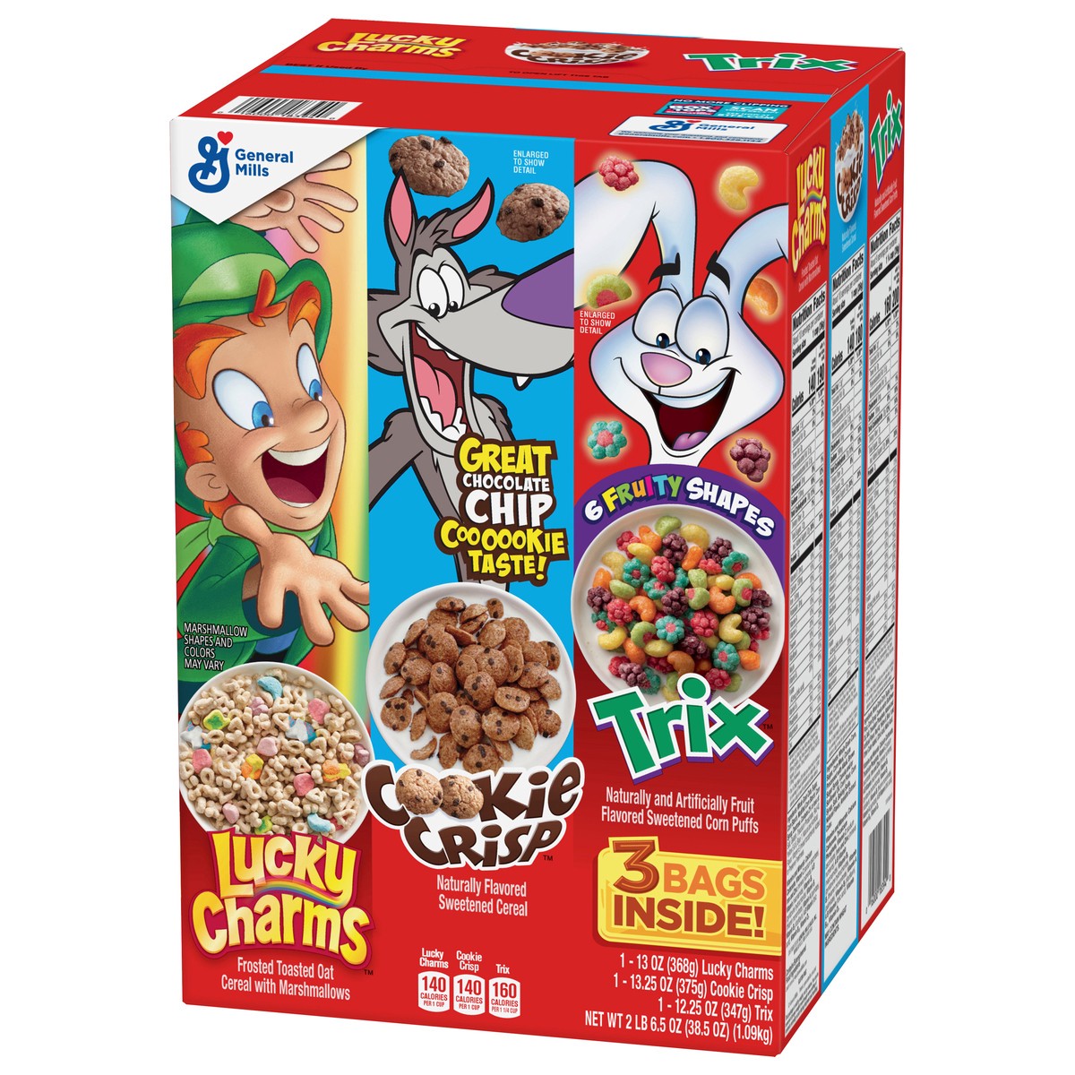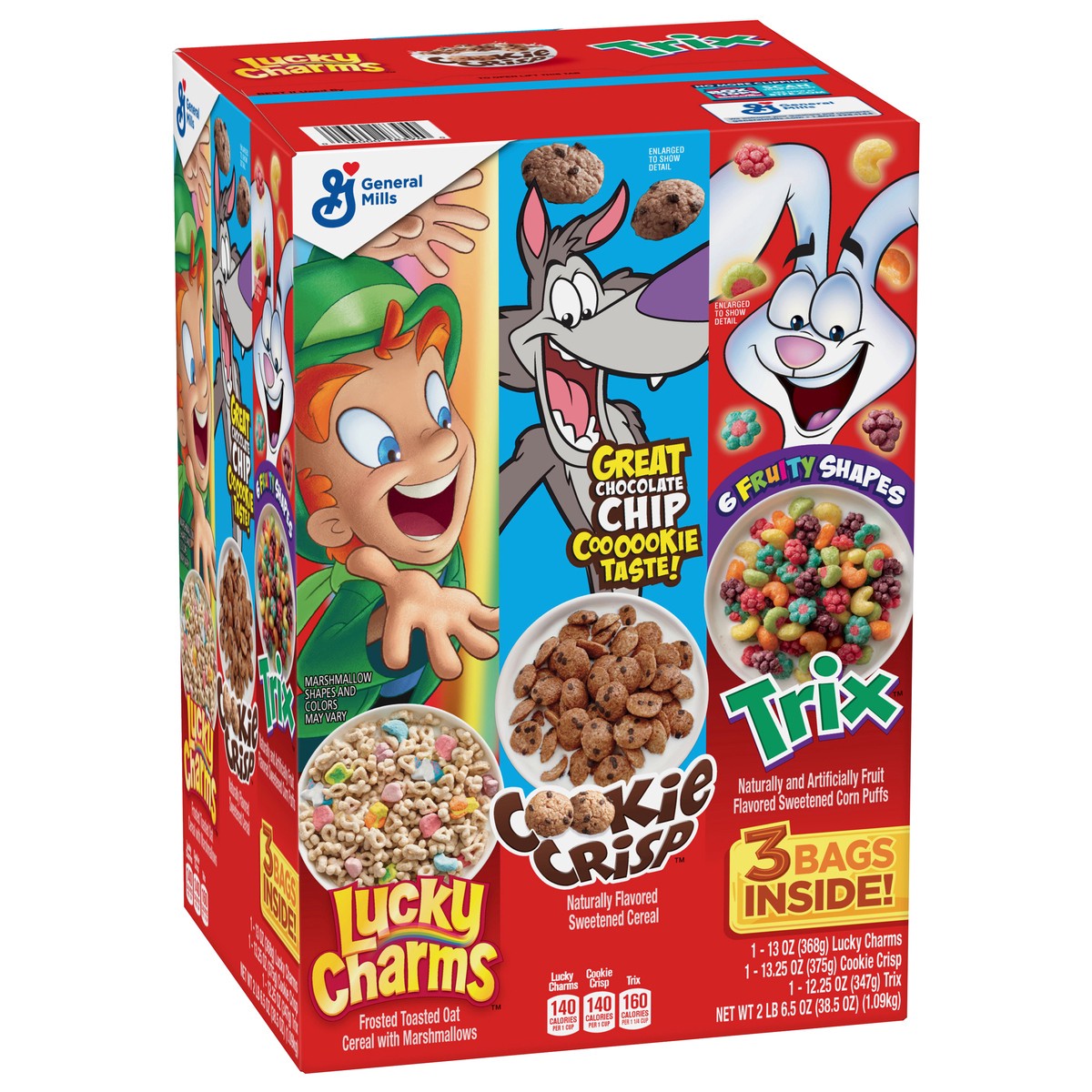 General Mills Kids Cereal Triple Variety Pack, Lucky Charms, Cookie Crisp, Trix, 38.5 oz