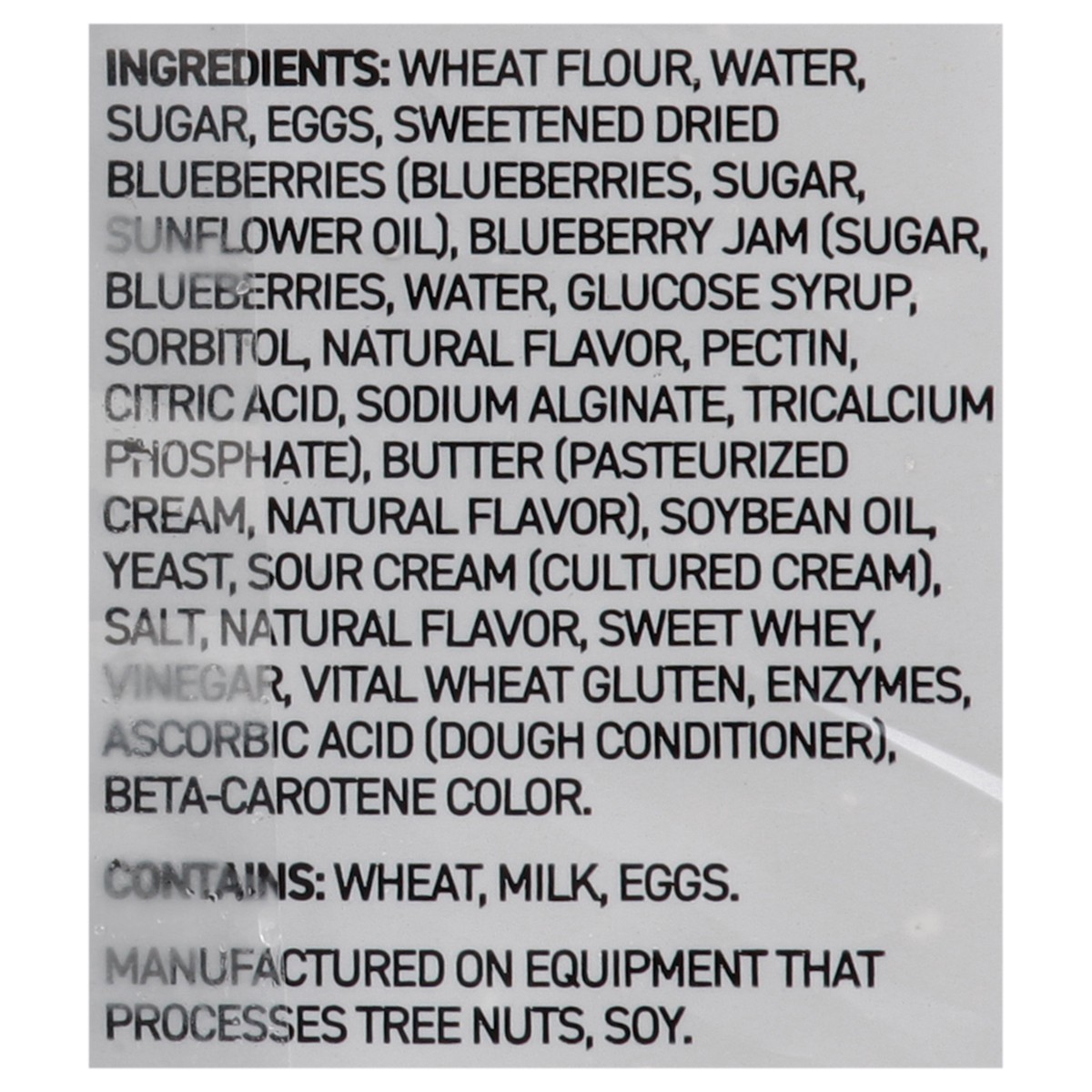 Wheat Flour, Water, Sugar, Eggs, Sweetened Dried Blueberries (Blueberries, Sugar, Sunflower Oil), Blueberry Jam (Sugar, Blueberries, Water, Glucose Syrup, Sorbitol, Natural Flavor, Pectin, Citric Acid…